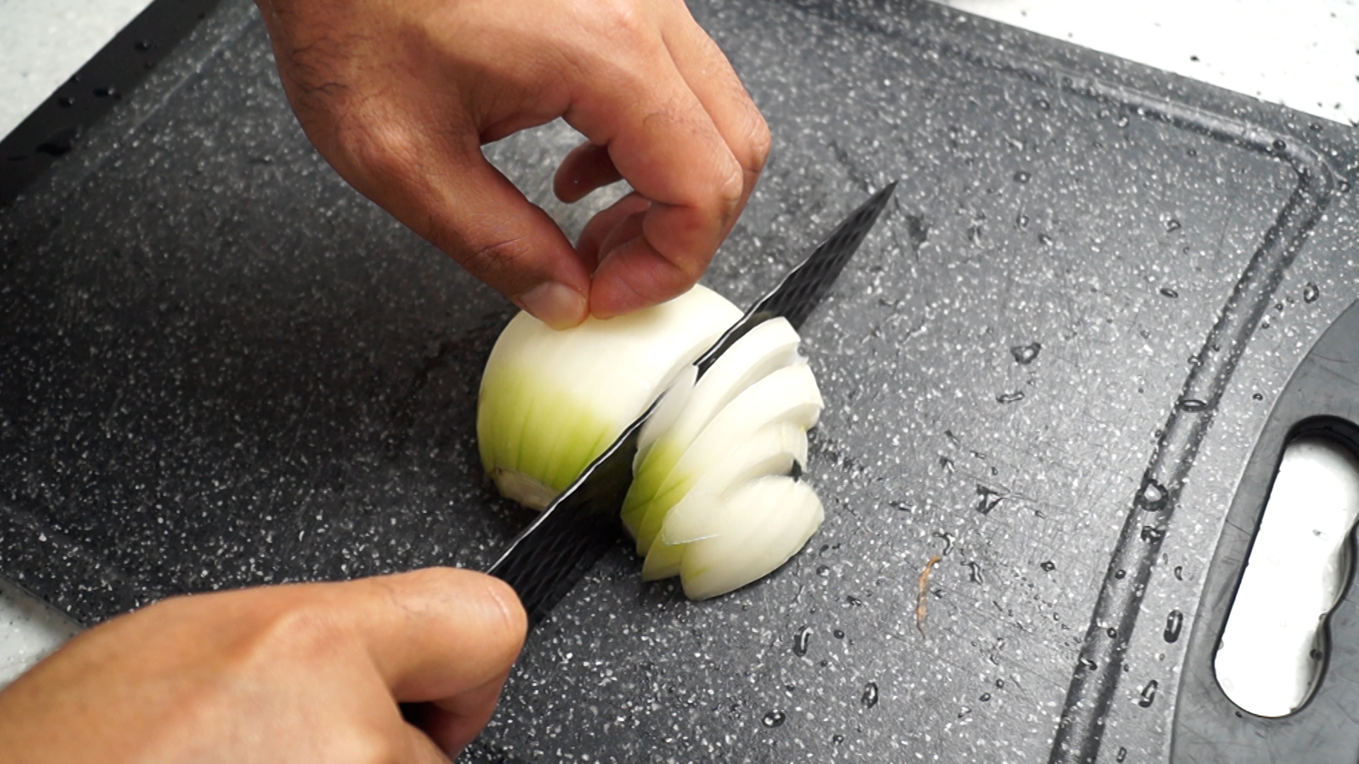 6. 양파도 얇게 채썰어 준비해주세요.