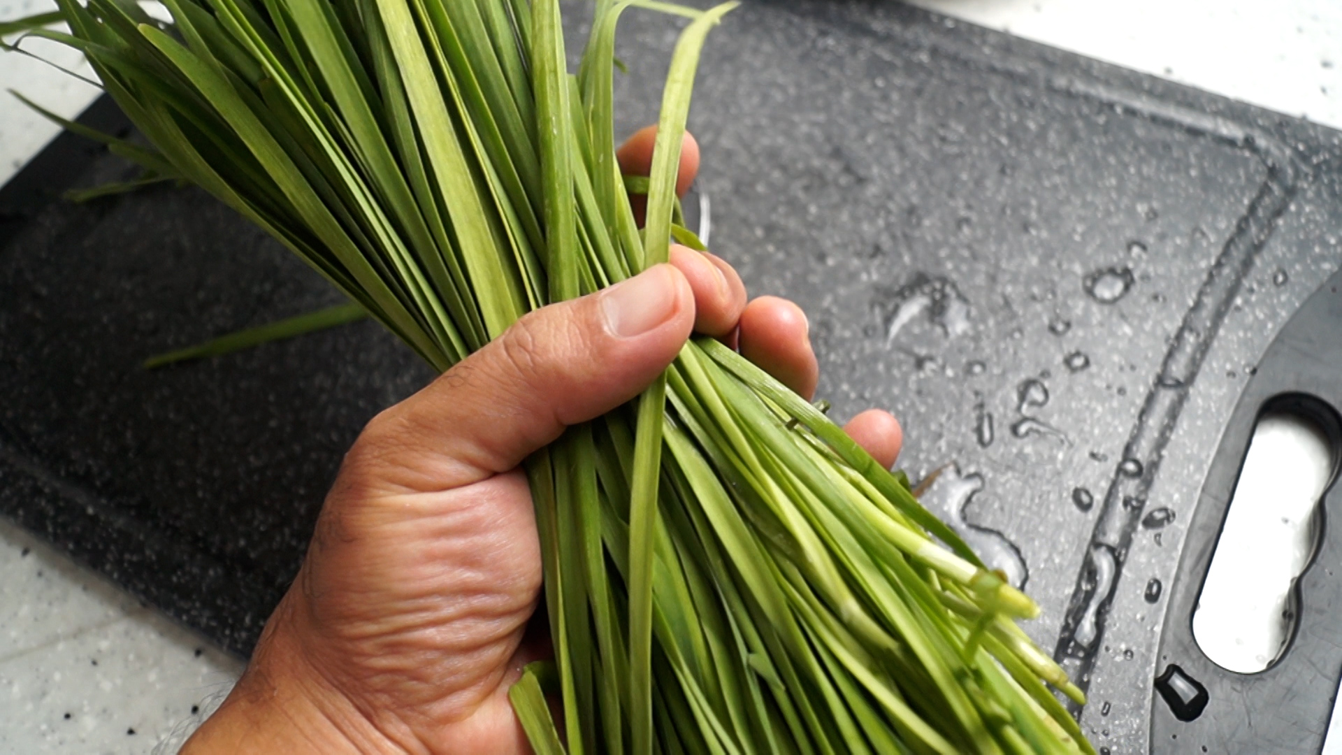 1. 저울이 없는 분들은 부추를 크게 1주먹 준비해주세요.