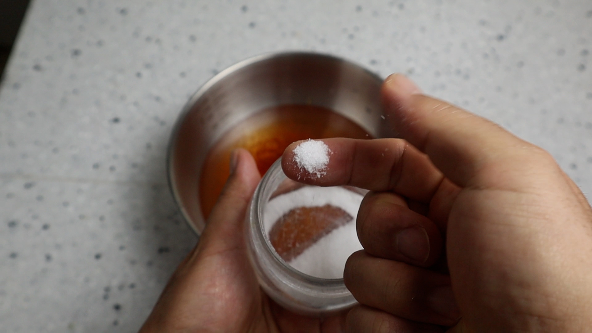 4. 맹물에 설탕을 넣어주세요. 기호에 따라 설탕양을 10~20% 늘여도 좋습니다.