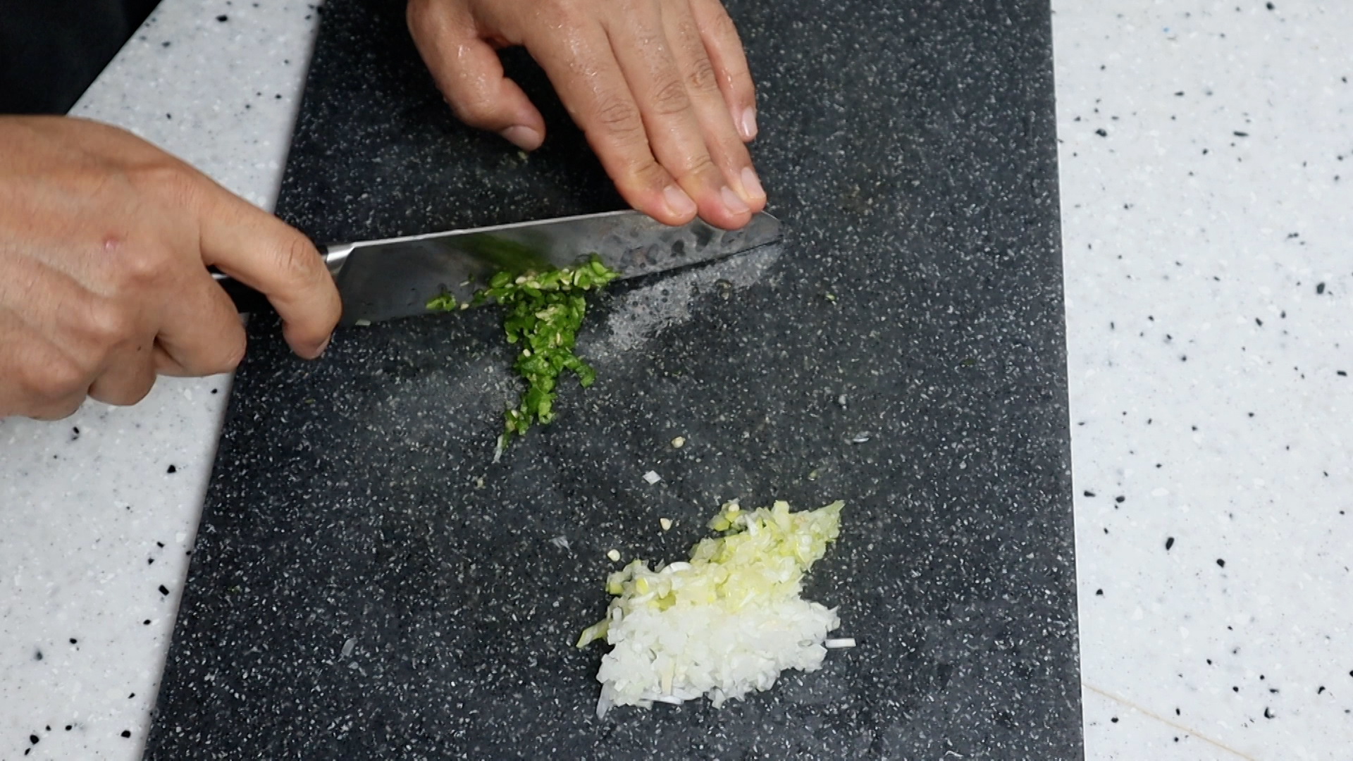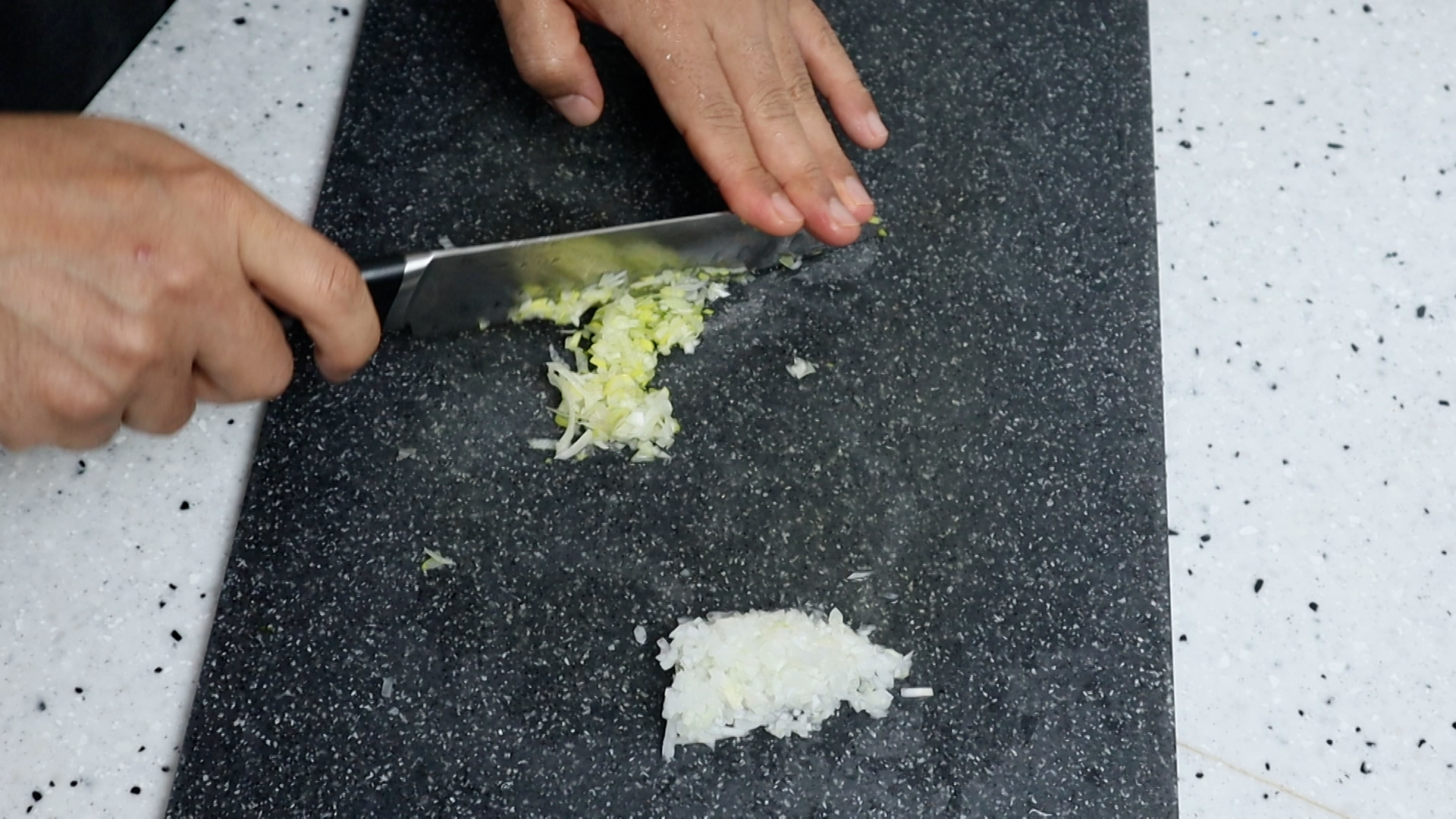 4. 양파를 고봉으로 1큰술 나올양을 잘게잘게 다져주세요.