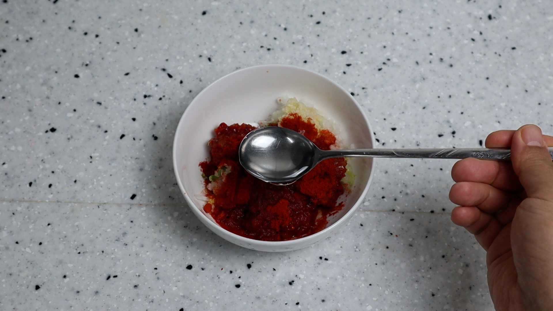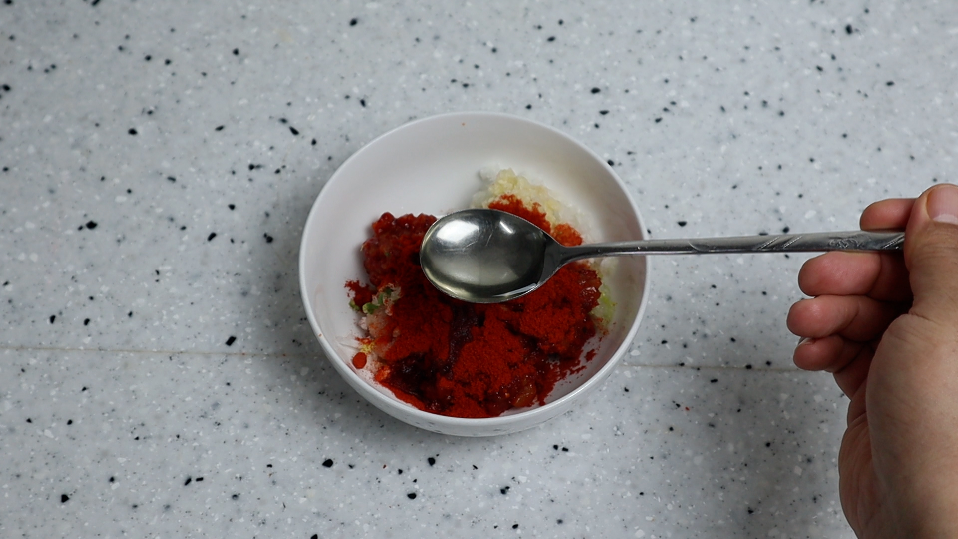 고운고춧가루 1스푼 7g (젓갈 양념이 멀걸땐 1.5스푼 10g)