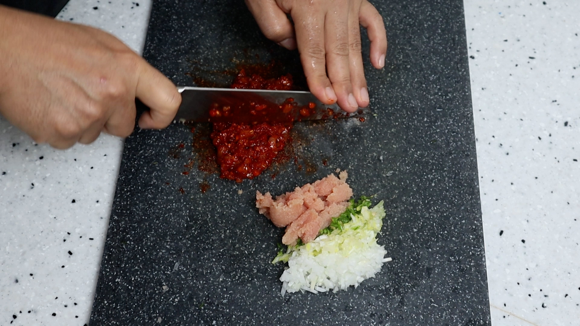 11. 다진 재료를 볼에 한데 넣어주세요.