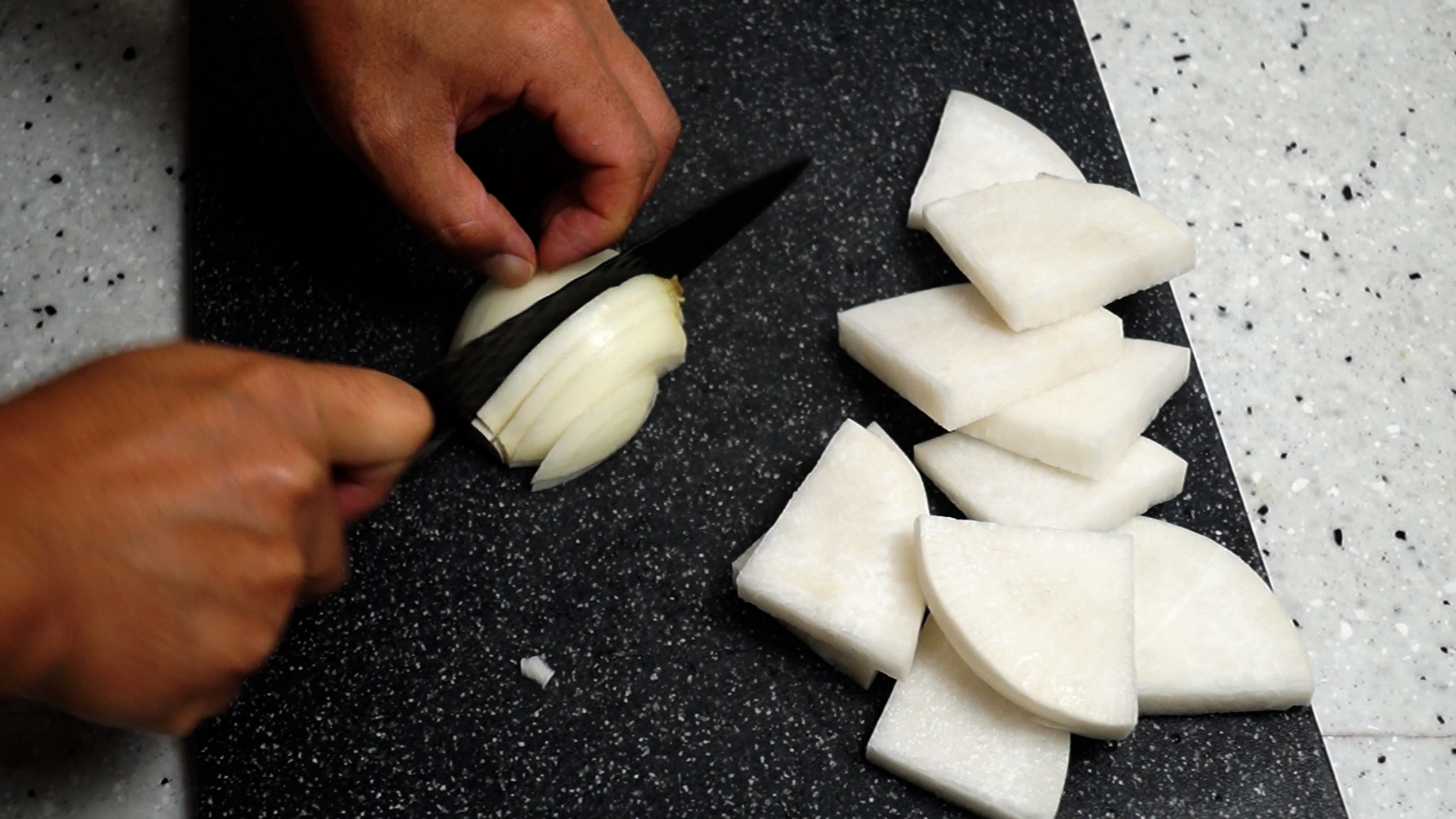 3. 양파는 0.5~1cm 정도로 채를 썰어주세요.