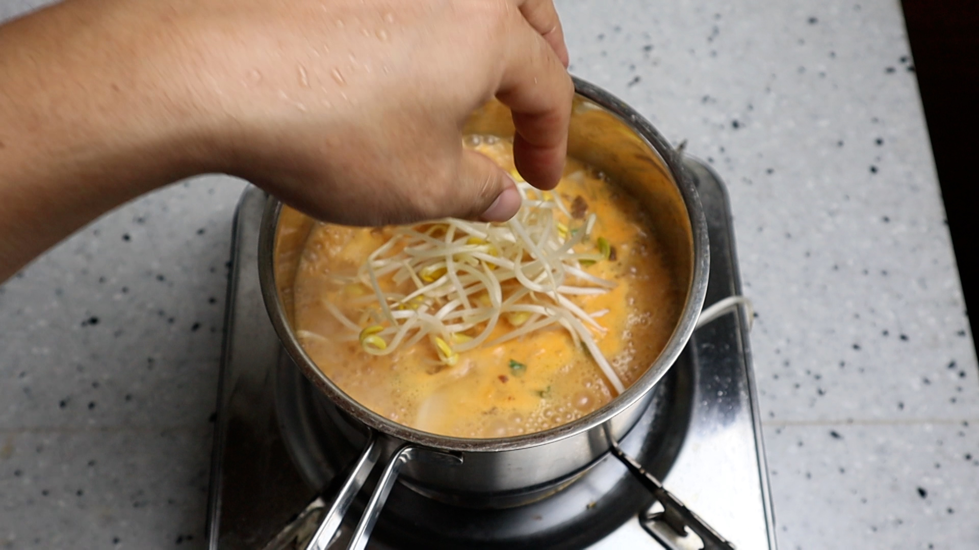 14. 물이 다시 끓어오르면 콩나물 1줌을 씻어서 넣어주세요.