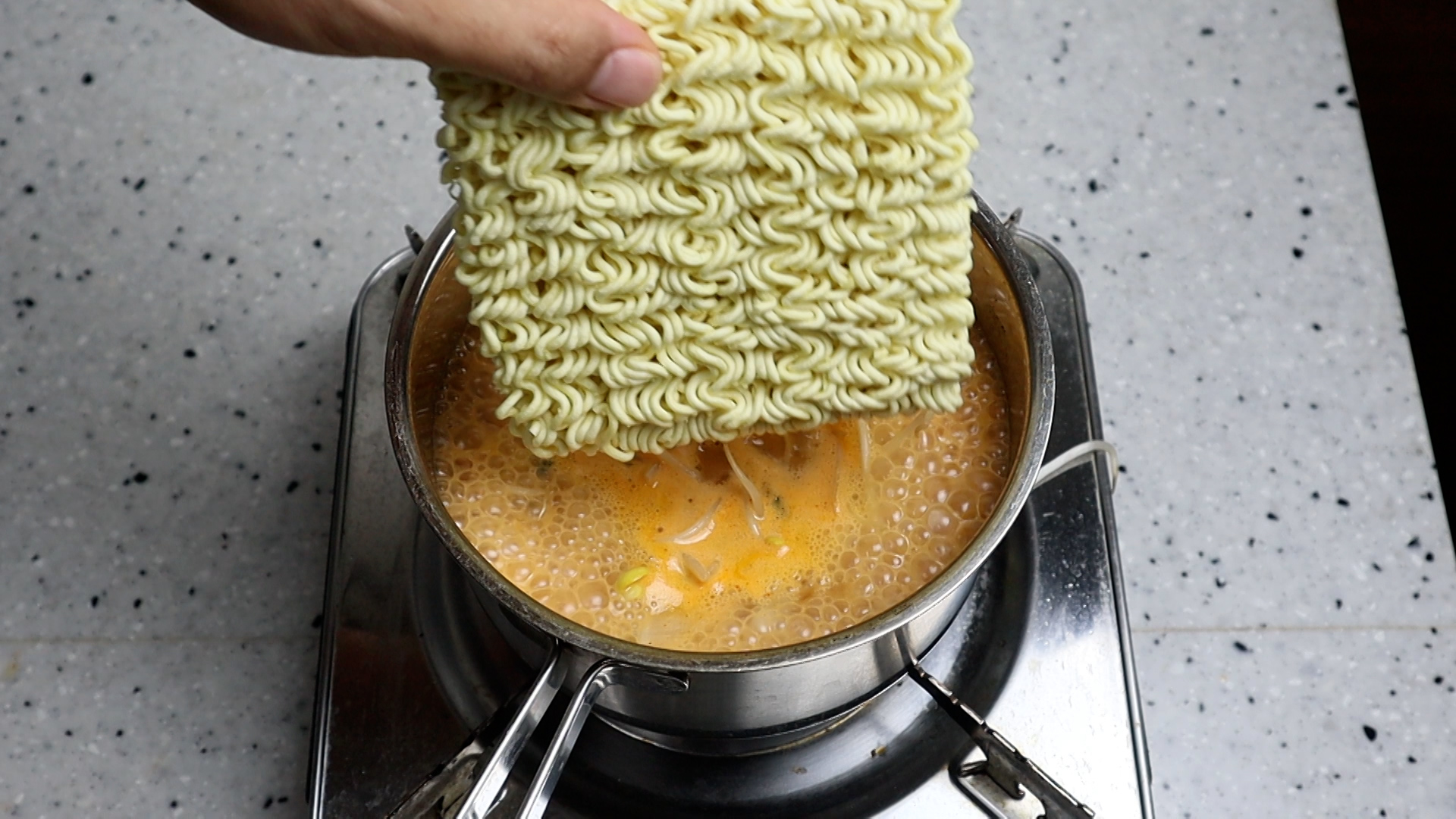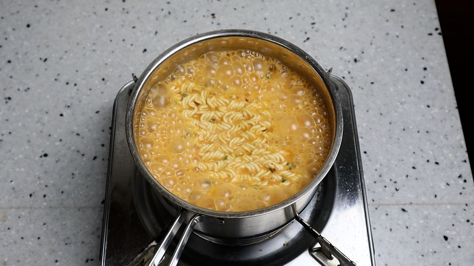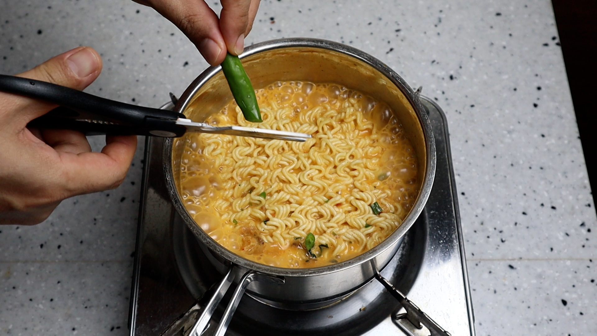 15. 라면면을 넣은 다음 구매한 제품의 라면 끓이는 시간에 맞게 끓여주세요.