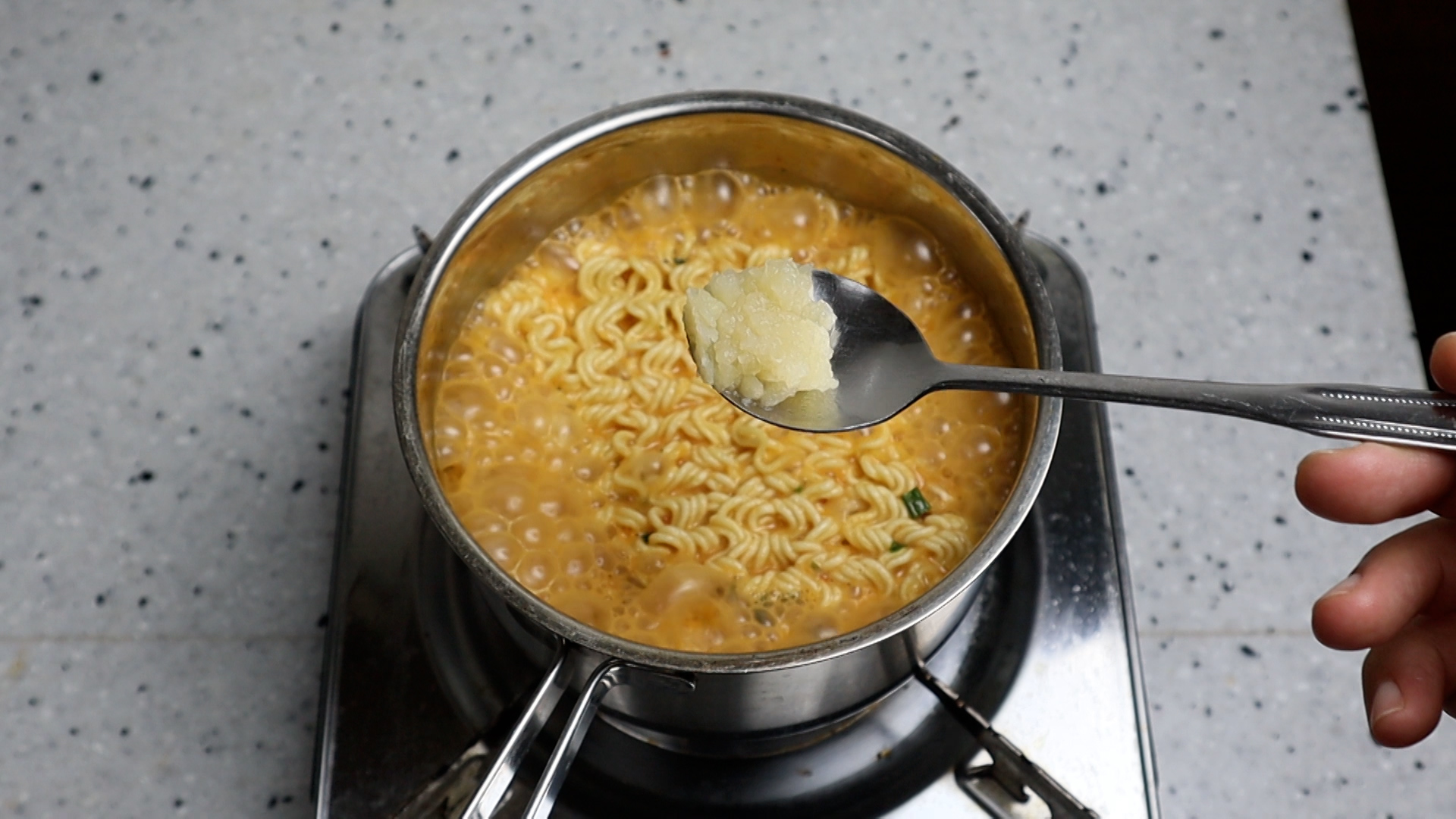 17. 라면 완성 10초 전에 간마늘을 넣어서 마늘향을 살려주세요.