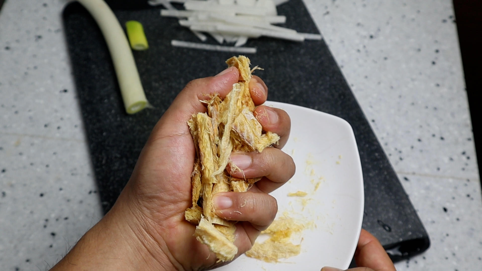 4. 황태채 25g 대략 크게 1주먹 되는 양을 밥 말땐 먹기좋게 자르고 안말땐 길게길게 잘라주세요.