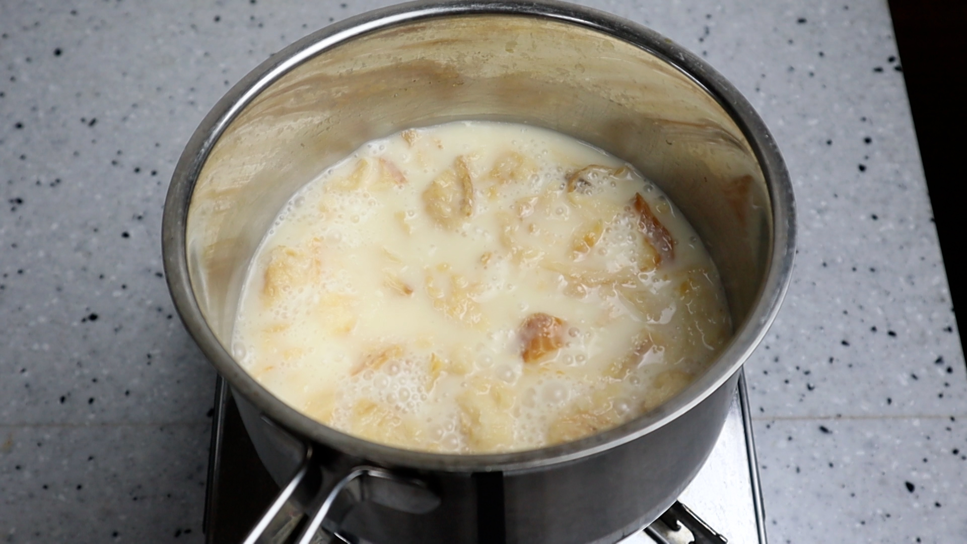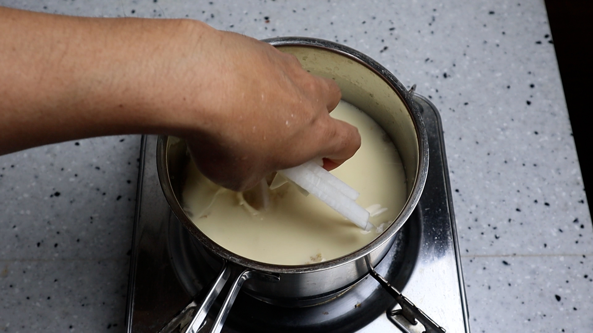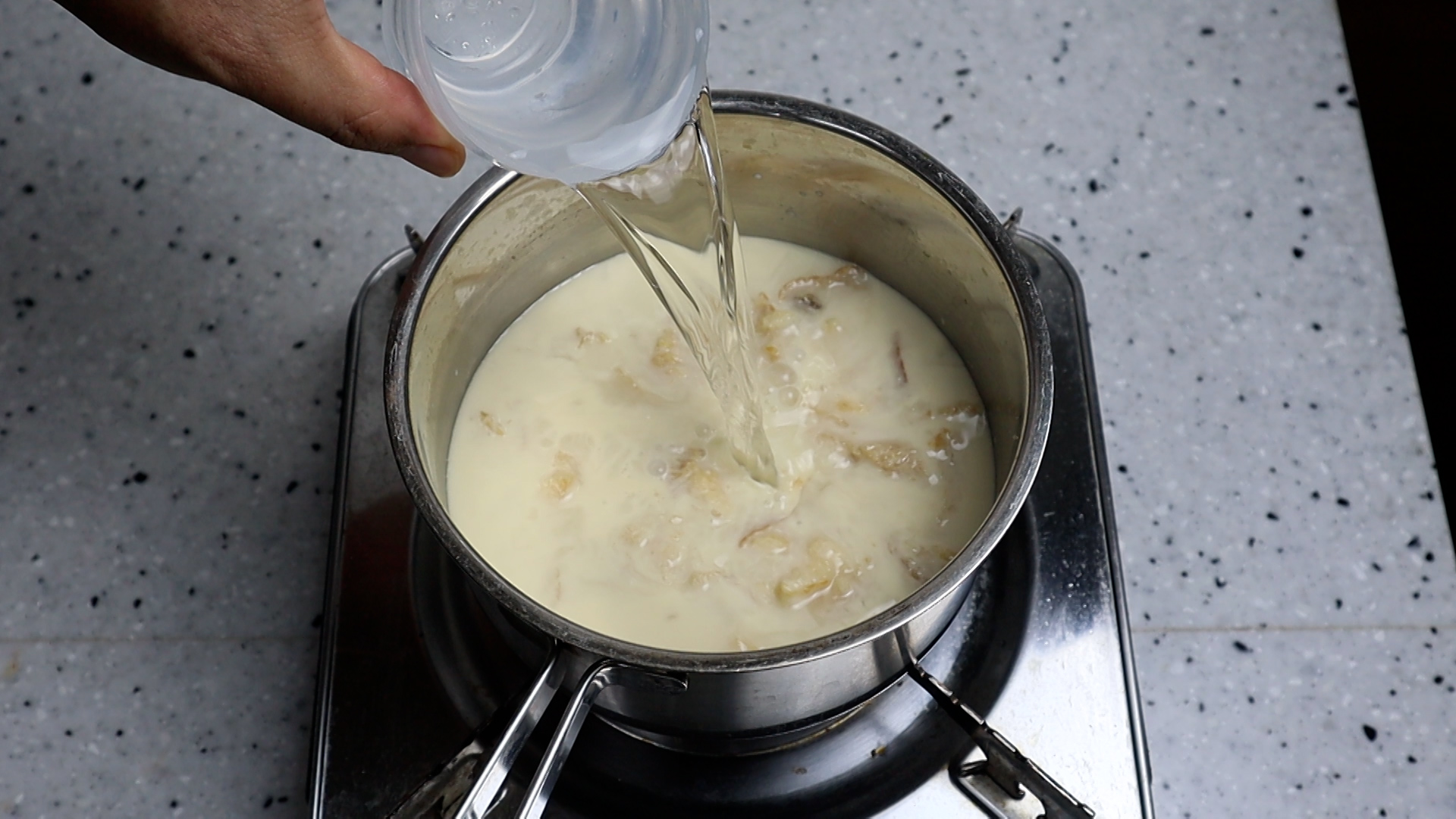 10. 뽀얗게 끓인 국물에 물 200cc 1컵을 추가해주세요.