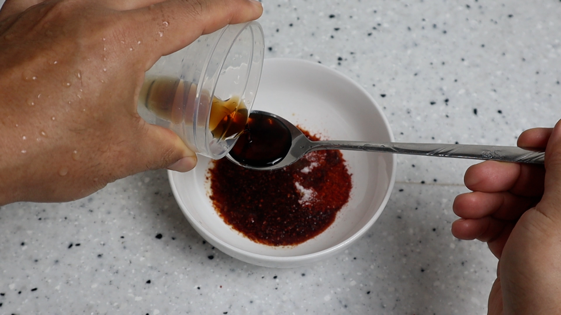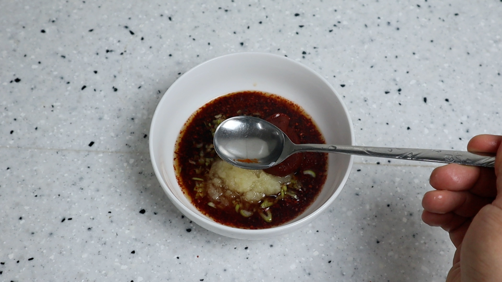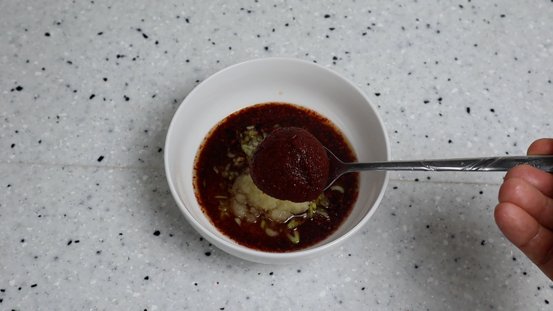 5. 양념란에 재료를 한데 넣어주세요. 고춧가루는 중간입자 고춧가루입니다.