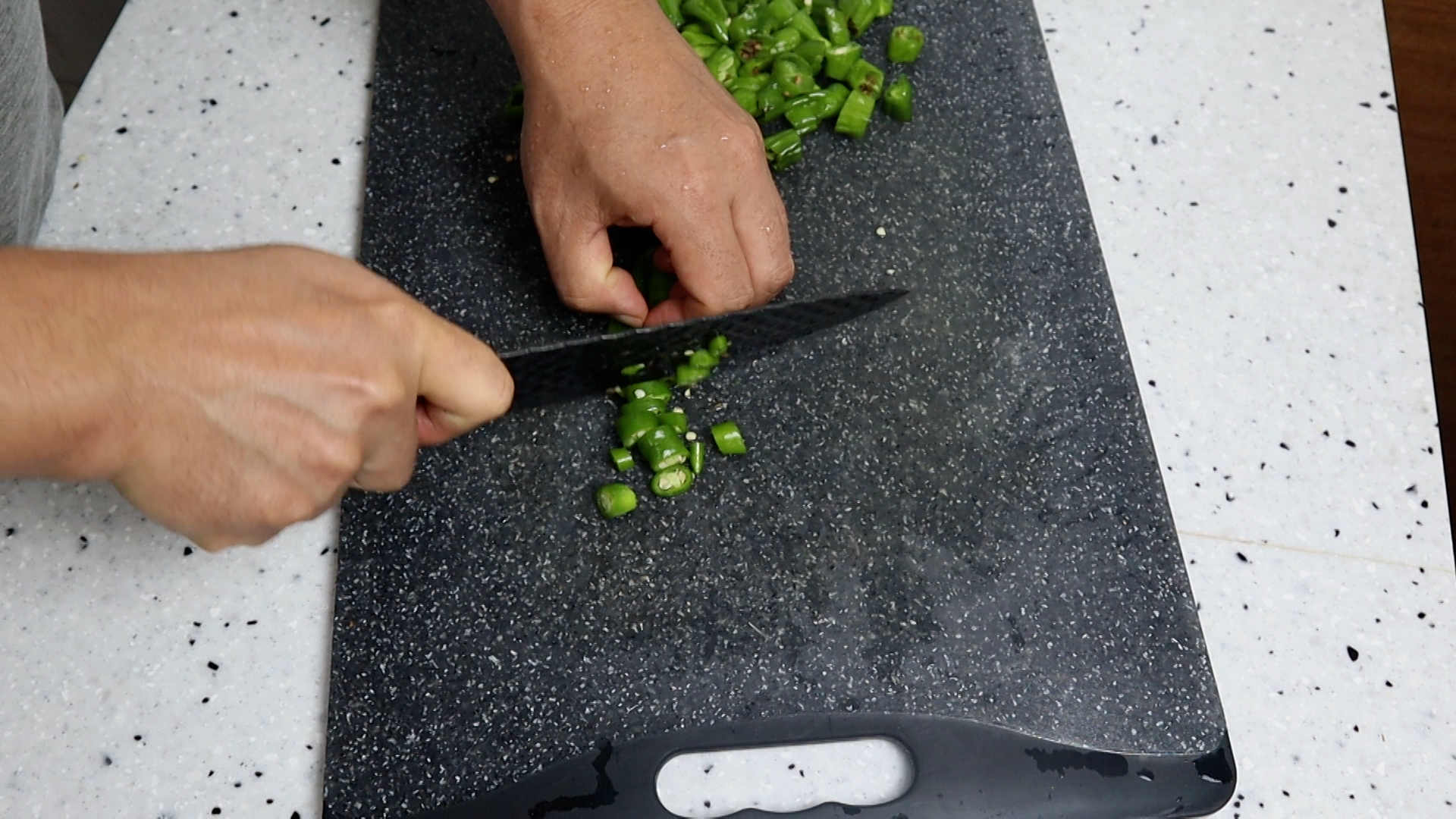 3. 땡초 2개도 1~2cm 크기로 잘라주세요.