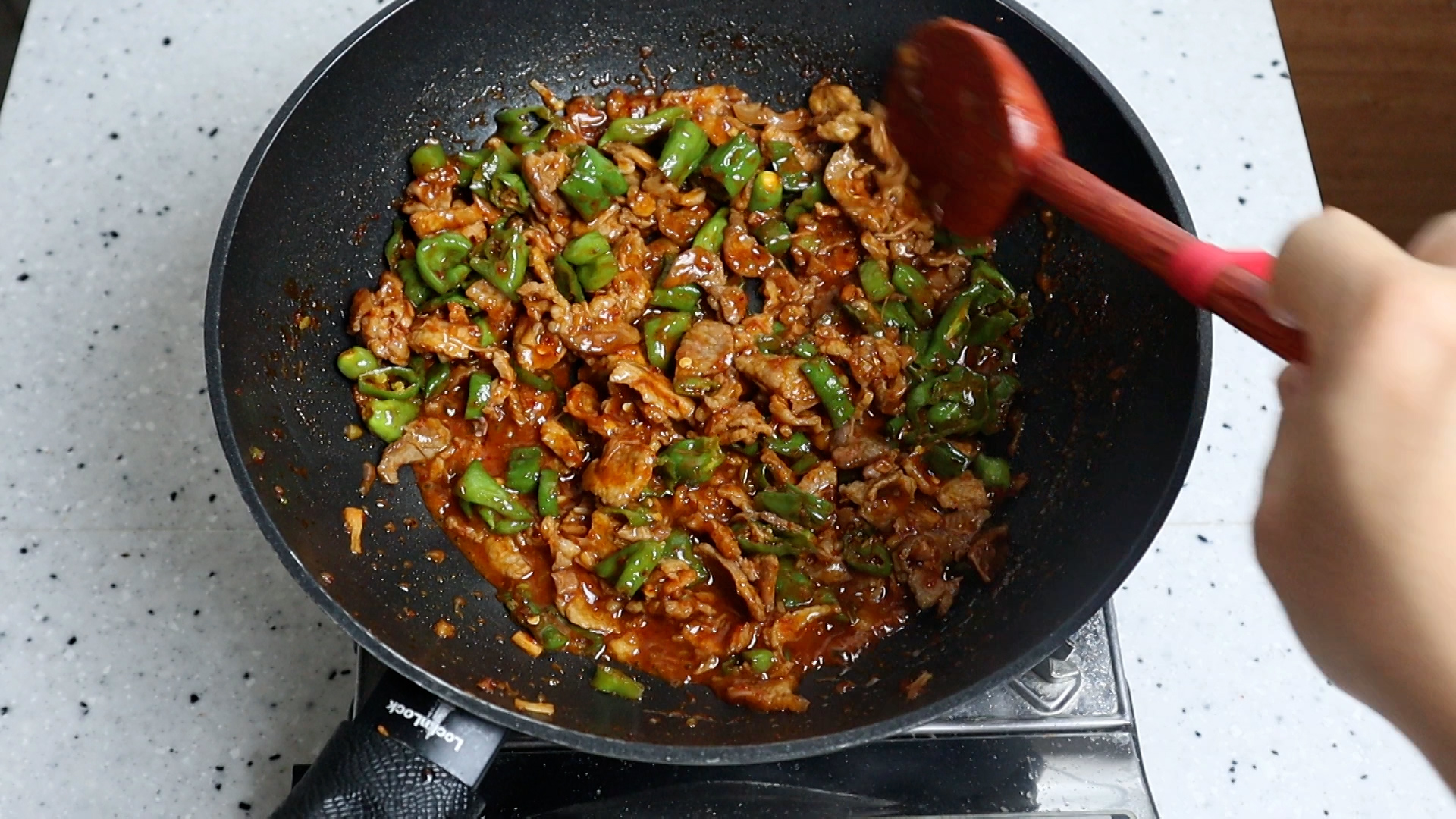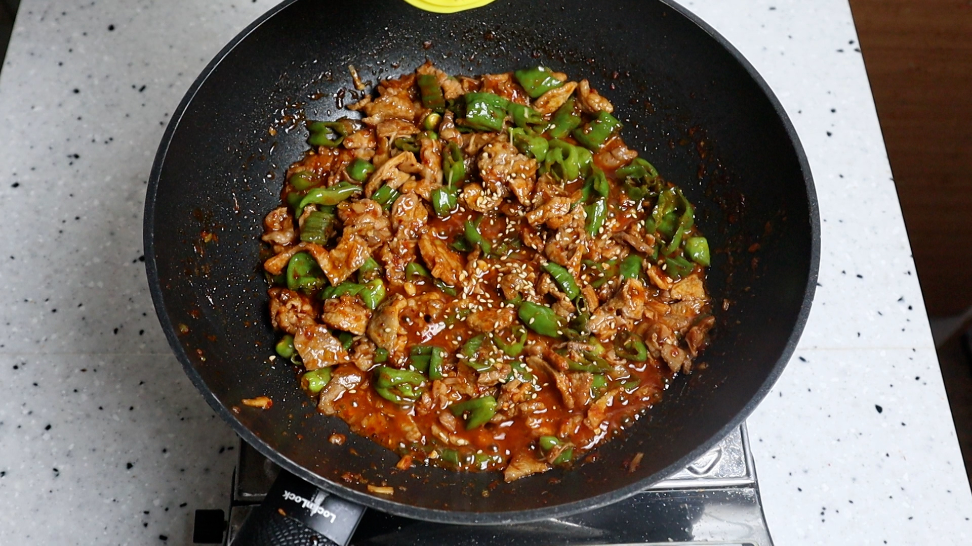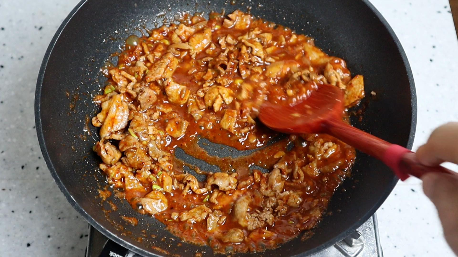 20. 양념을 전부 넣고 1분 30초 정도 볶아주세요.