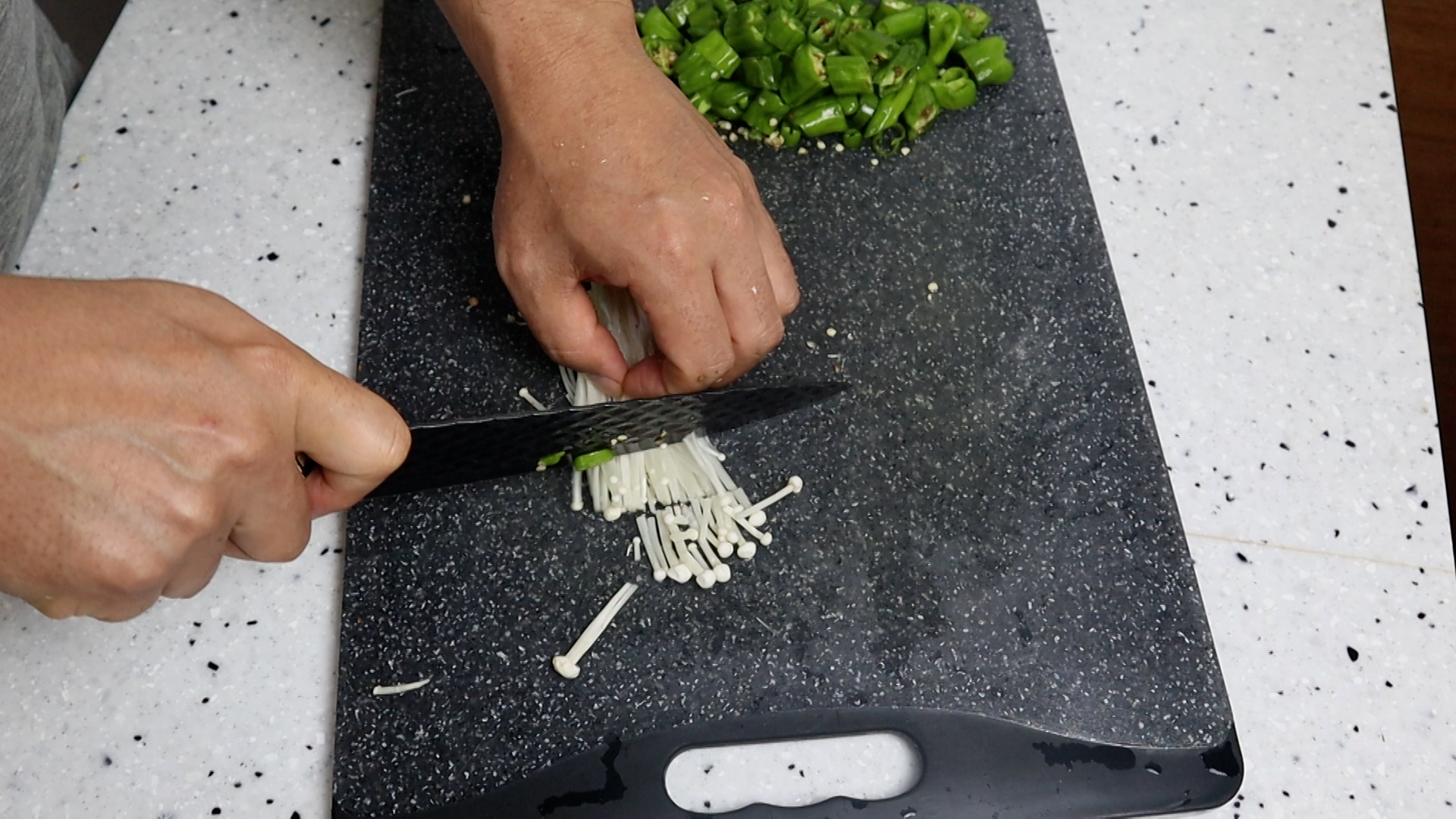4. 팽이버섯은 몇가닥씩 찢어서 2~3cm 크기로 잘라주세요.