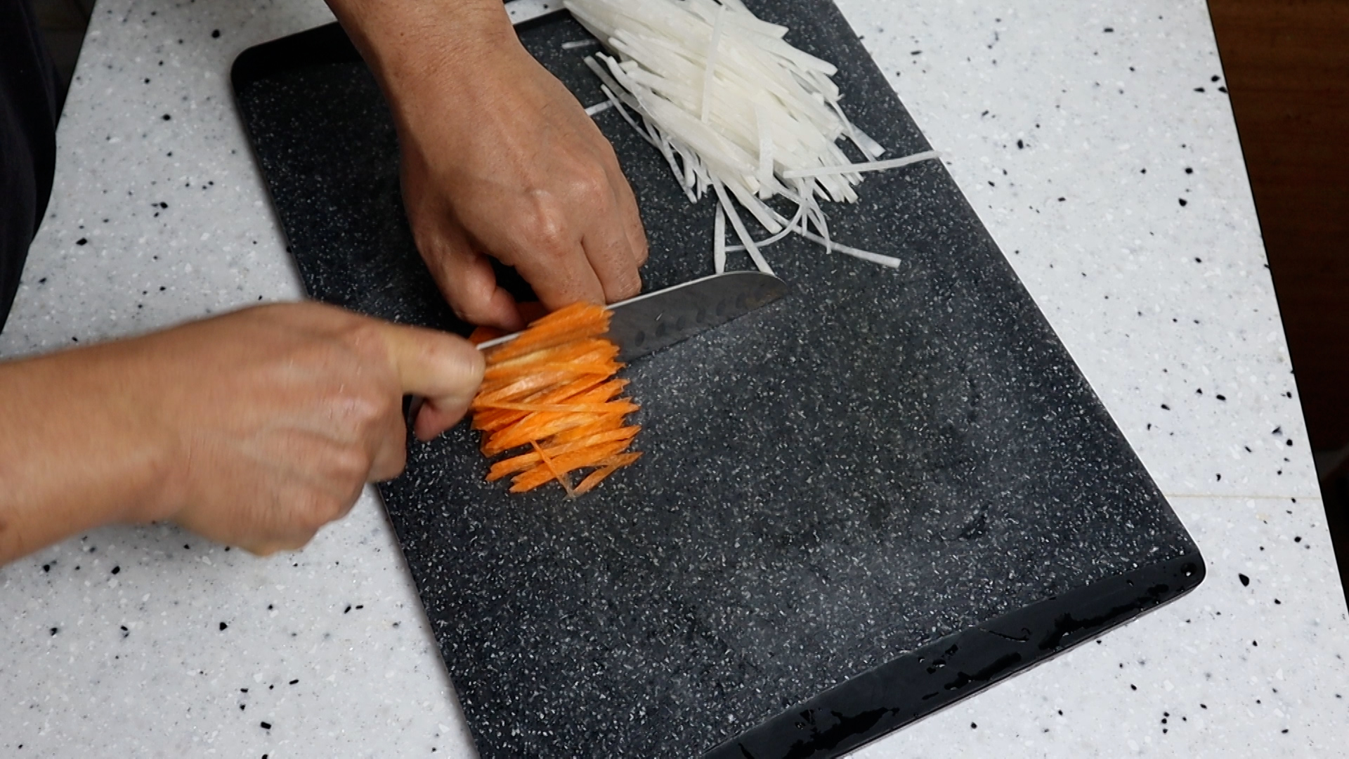 2. 당근도 무 처럼 얇게 채를 썰어주세요.