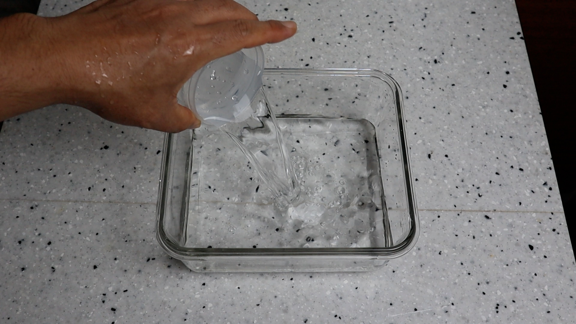 4. 밀폐 용기에 맹물 7컵 1.4리터를 부어주세요.