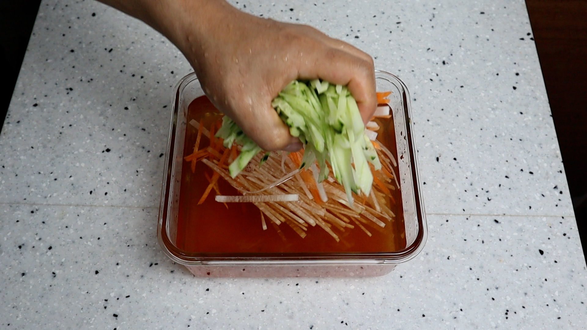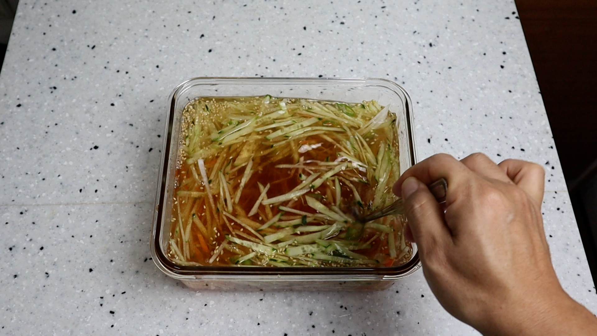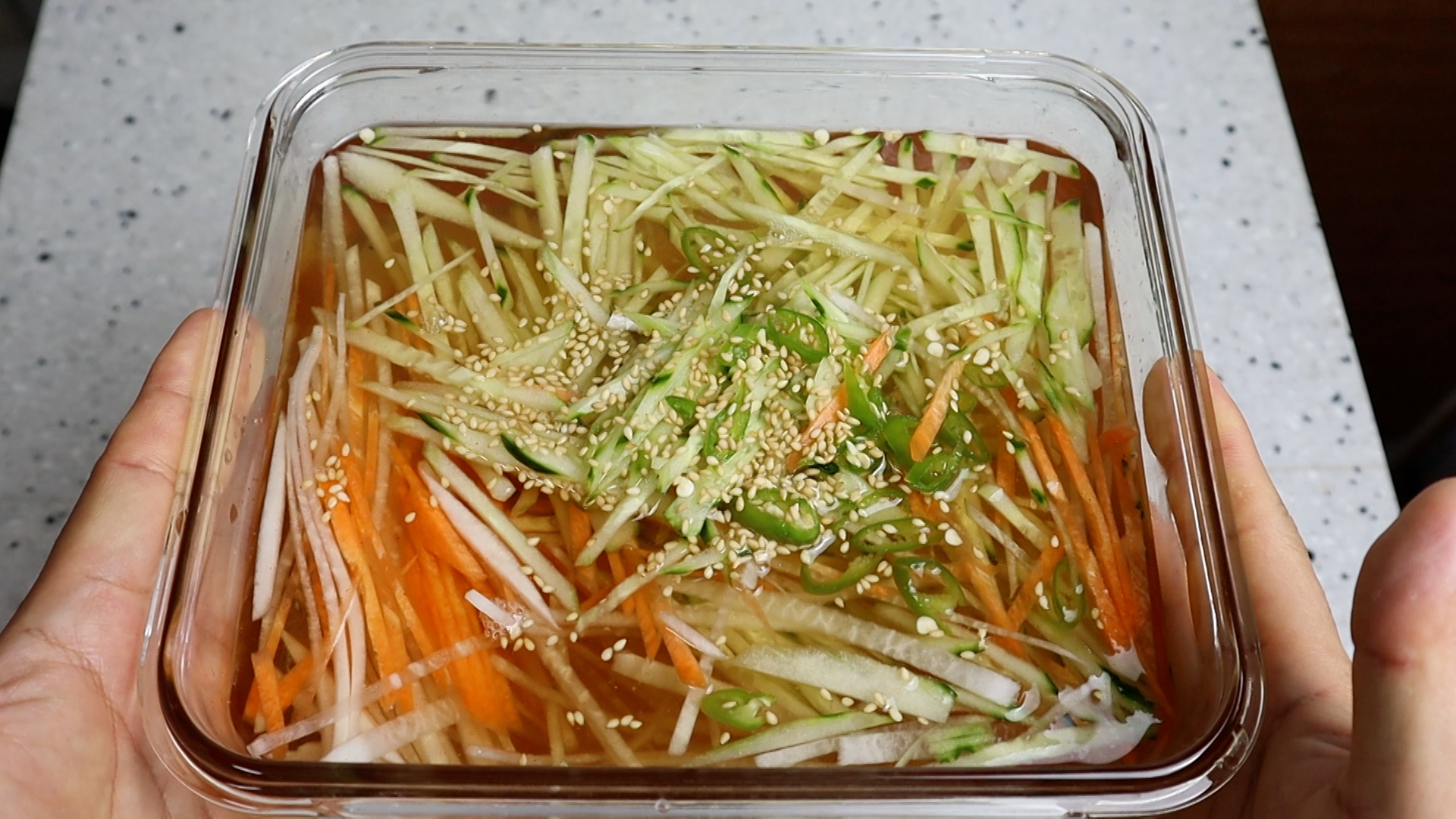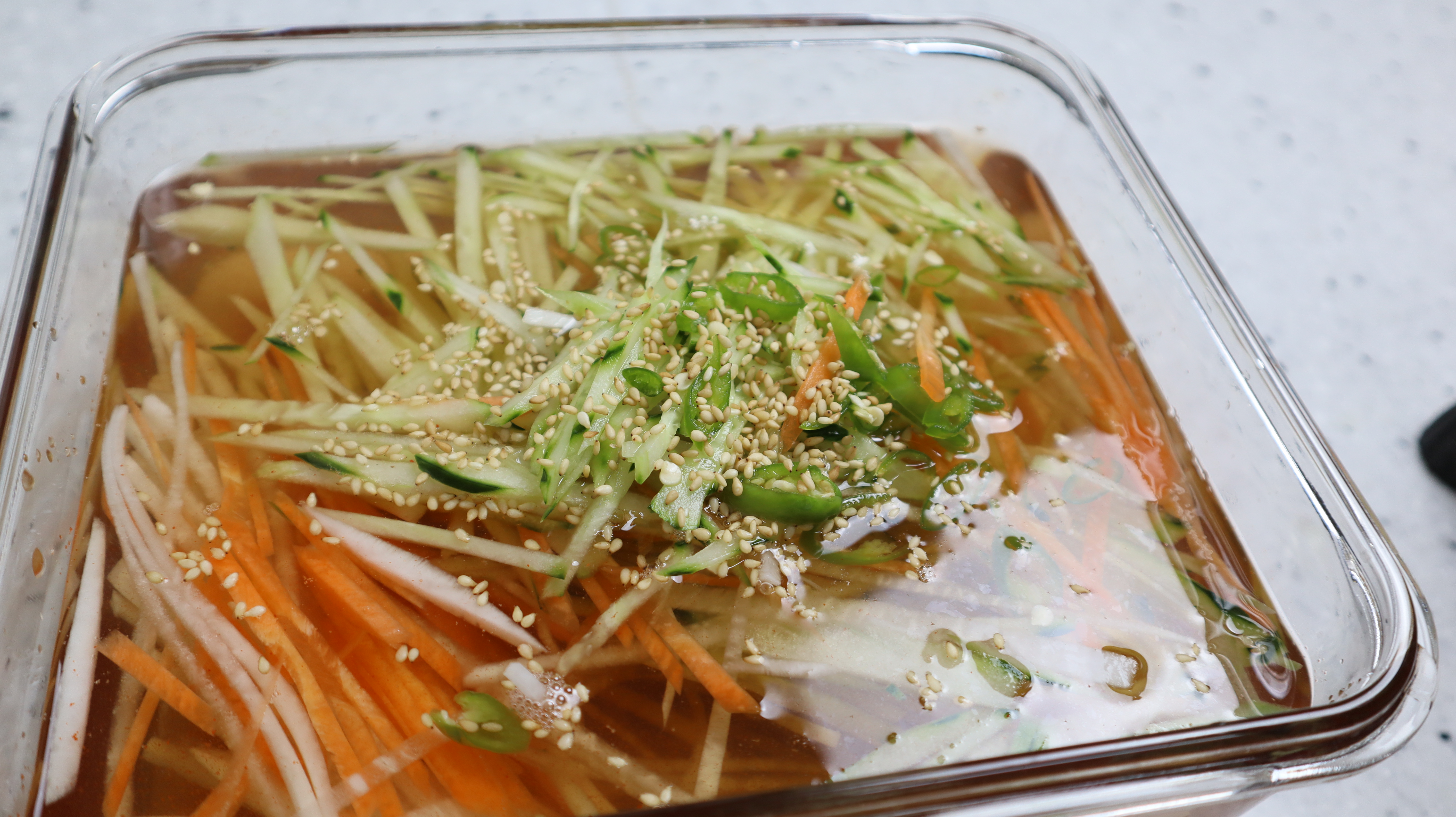 18. 골고루 섞어서 뚜껑을 덮고 냉장실에서 24시간 숙성 시켜주세요. 48시간 숙성하면 국물에서 살짝~ 무 동치니 느낌이 난답니다.