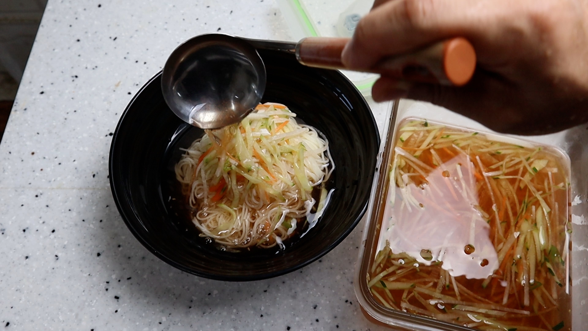20. 국수를 삶아서 차갑게 헹궈 물기 짜고 이 국물과 건더기를 듬뿍 올려주면 시원한 냉국수로도 활용 가능합니다.