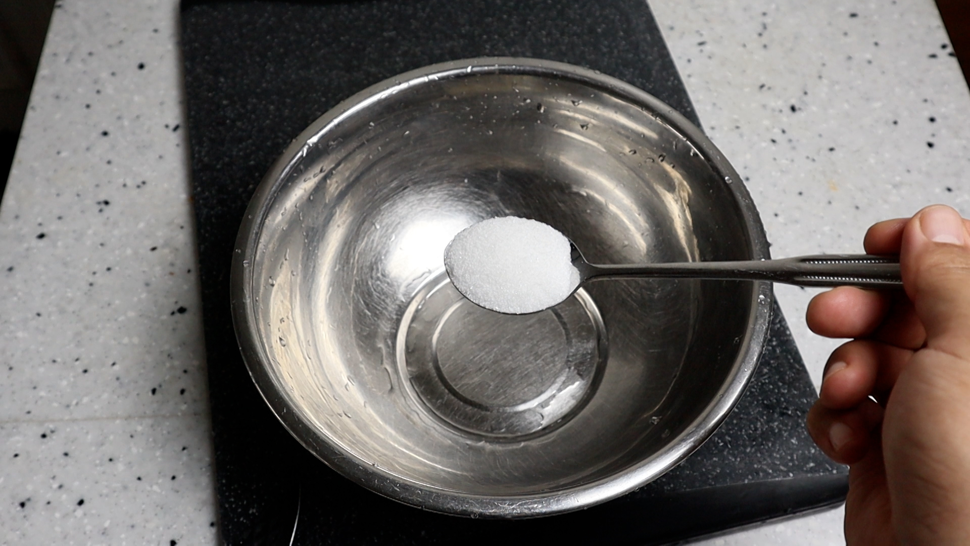 3. 설탕을 반스푼 넣어주세요.