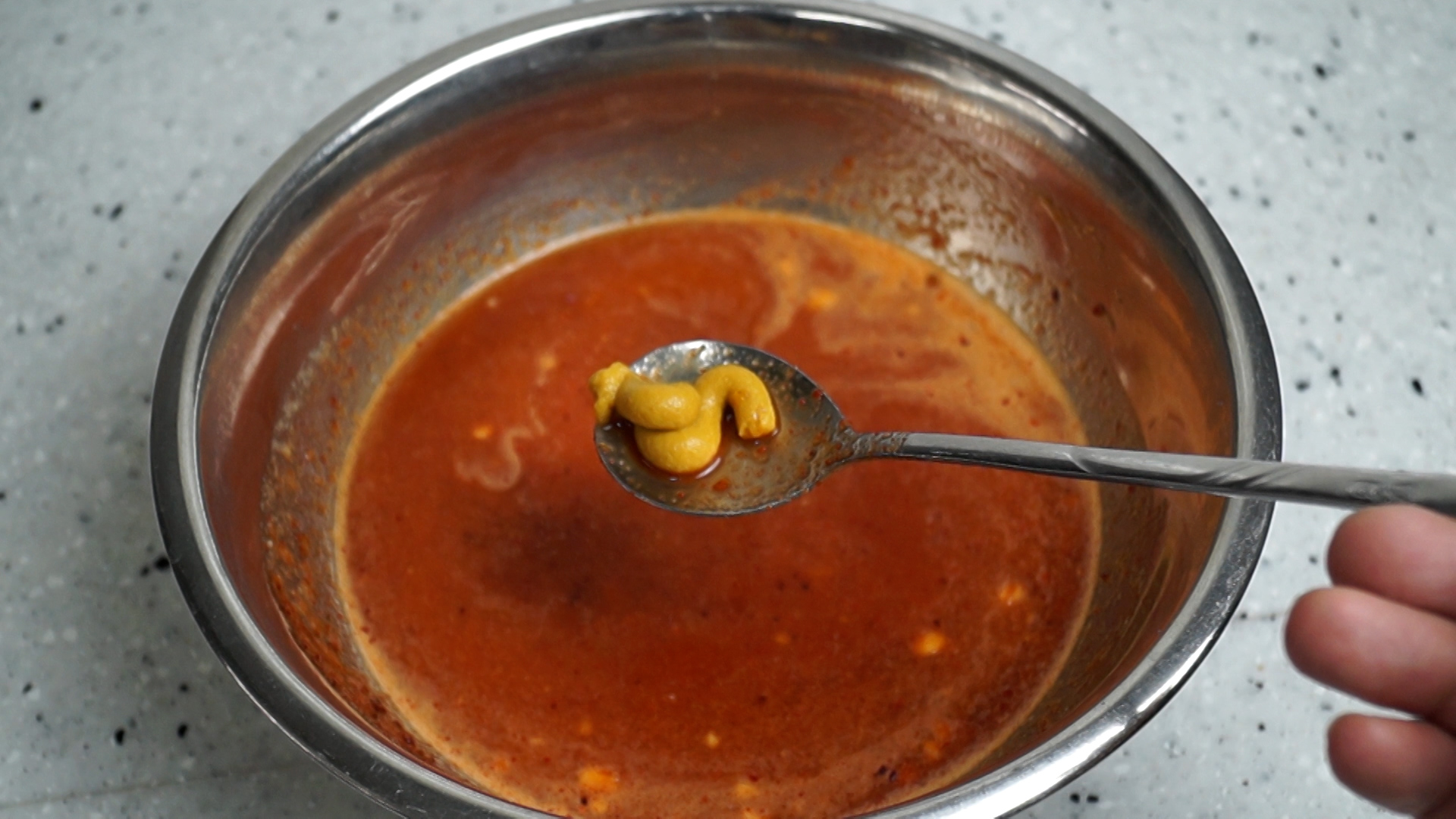 17. 연겨자를 넣어주세요. 연겨자는 덩어리 없게 골고루 개어서 넣어주셔도 좋습니다.