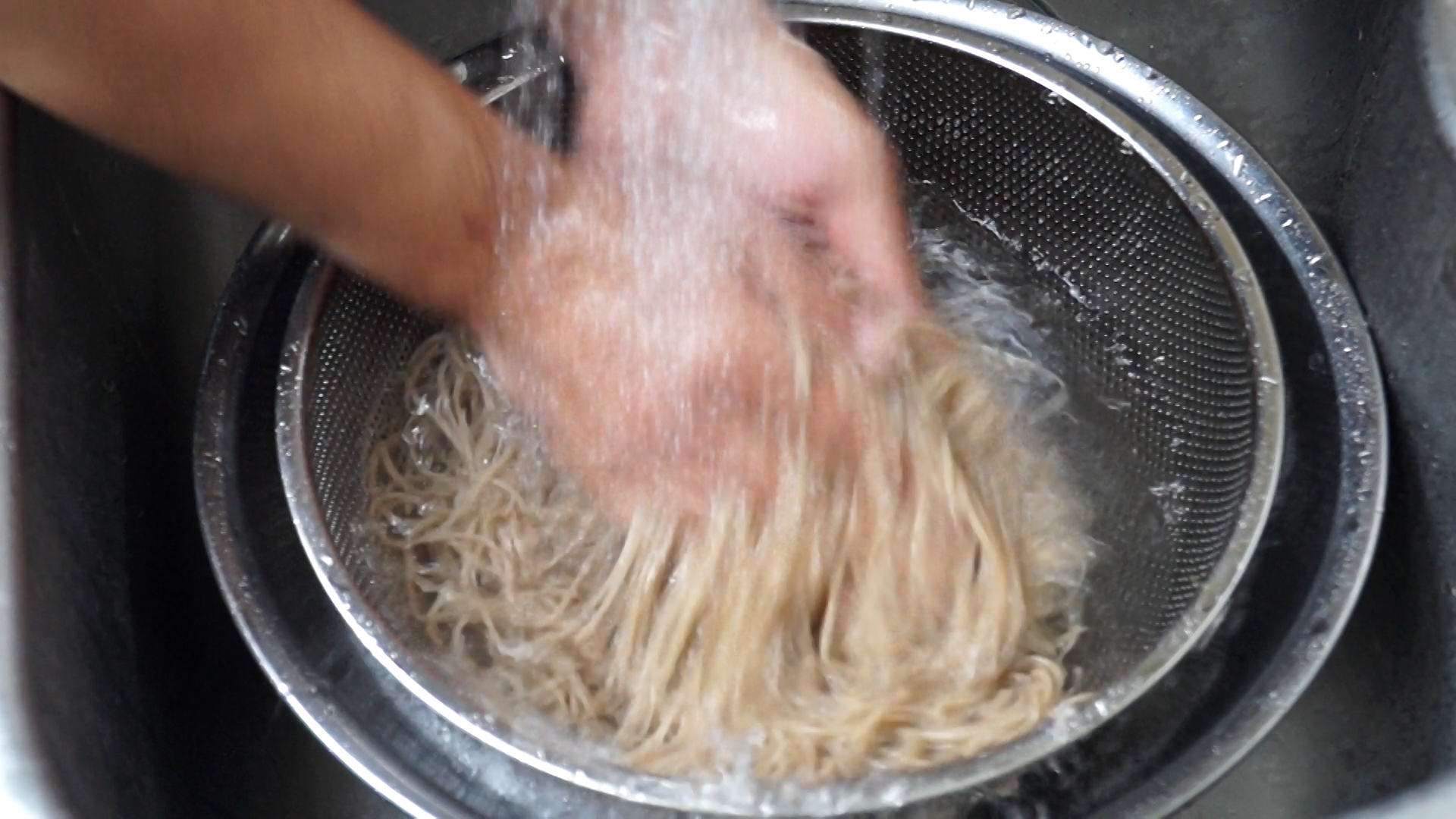 21. 찬물에 바득바득 씻은 다음 물기를 꽉 짜주세요.
