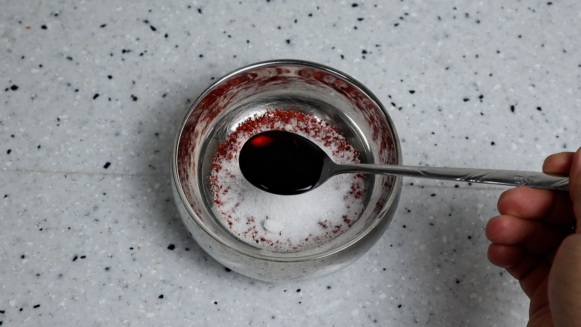 1. 양념란에 재료를 한데 넣고 미리 섞어 놓을 거에요. 고춧가루는 중간입자 고춧가루입니다.