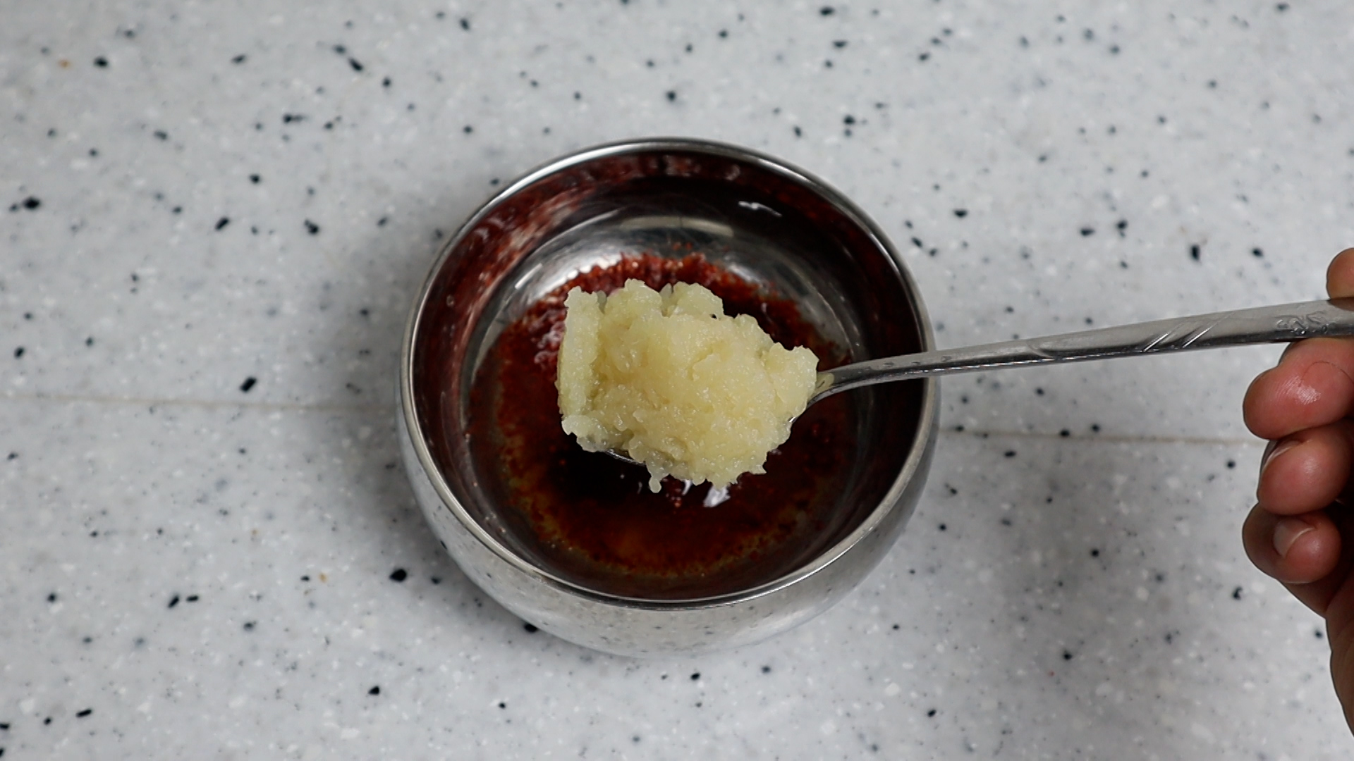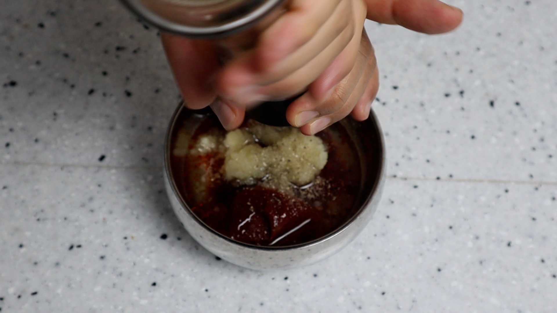 6. 간마늘은 크게 1큰술 퍼서 넣어주세요.