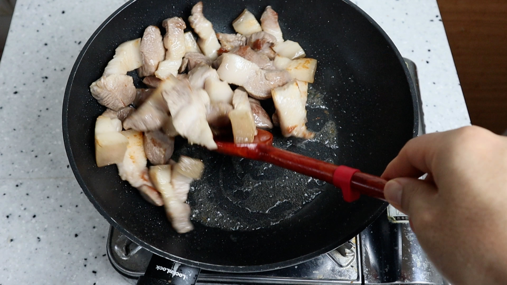 17. 5~6분 정도를 섞어가면서 볶아주믄 기름이 자글자글 나오고 고기는 살짝살짝 갈색하게 익어갈거에요.