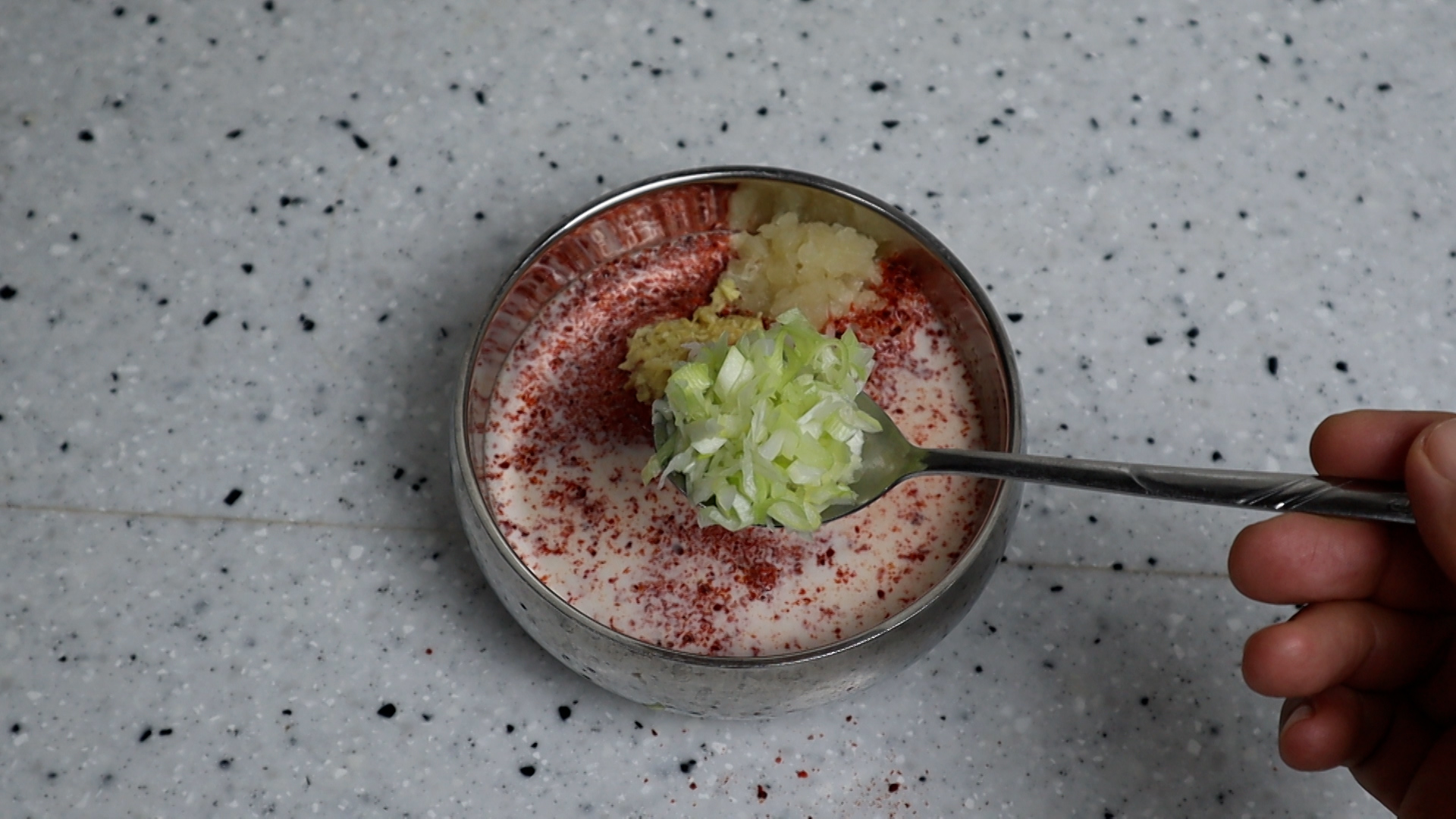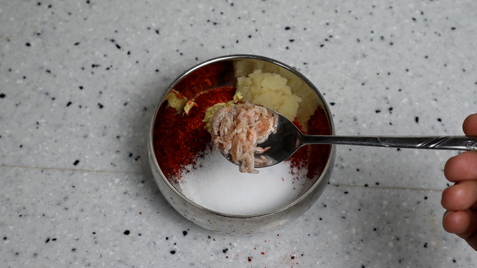 13. 새우젓을 건더기만 반스푼 넣어주세요.