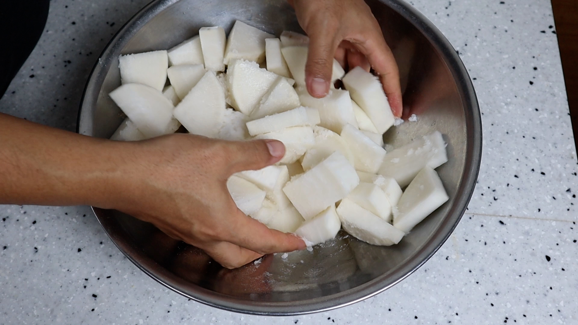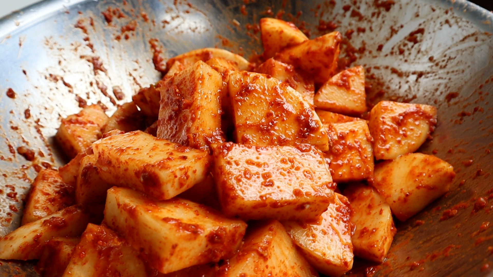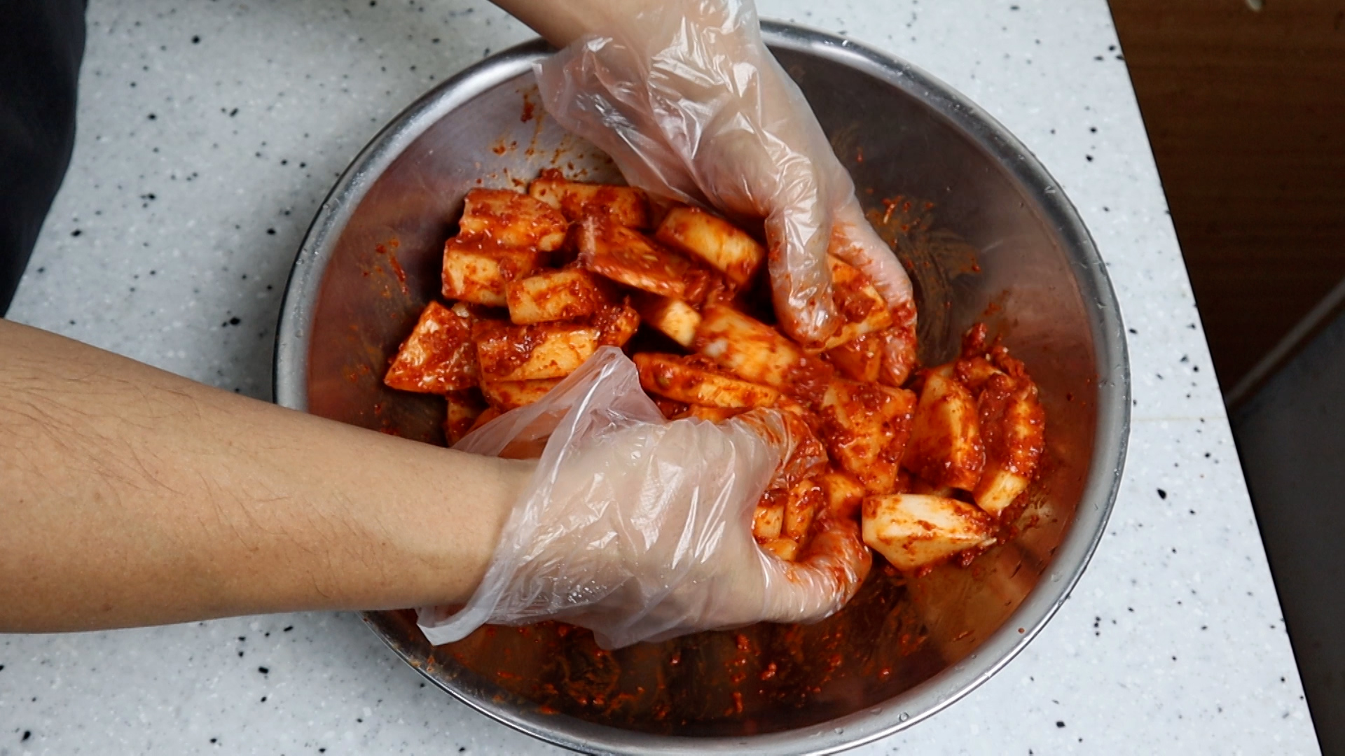 22. 양념과 무를 골고루 버무려주세요.