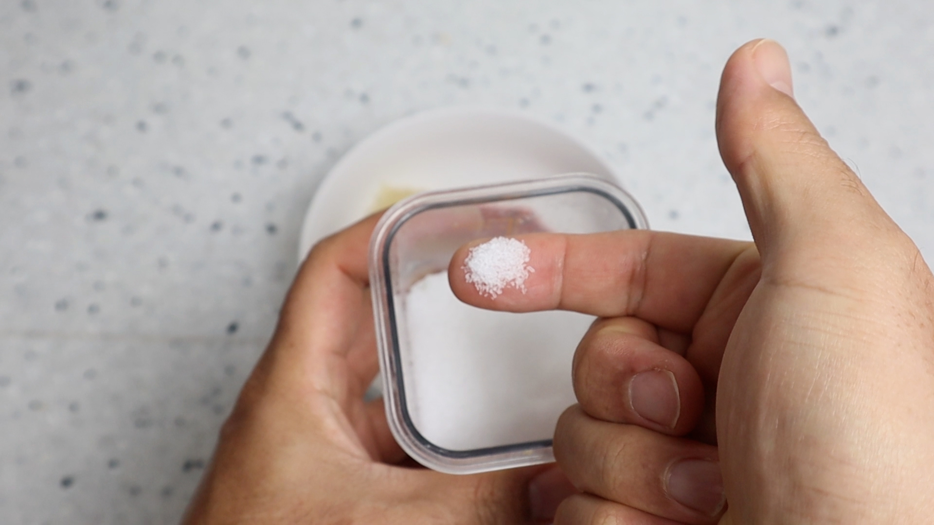 8. 감칠맛 나는 짠맛 올려줄 맛소금을 요정도 집어서 3꼬집 넣어주세요.