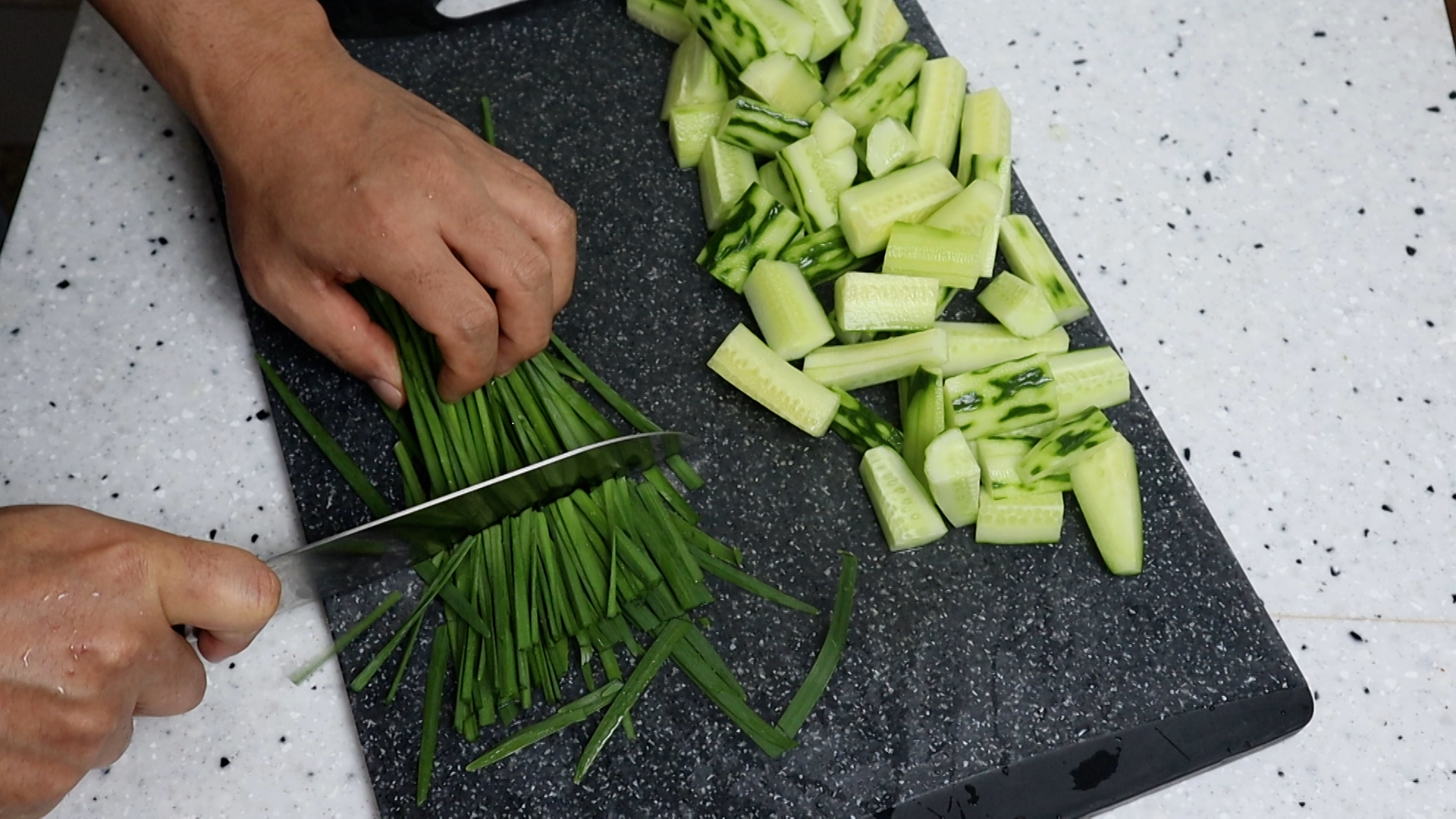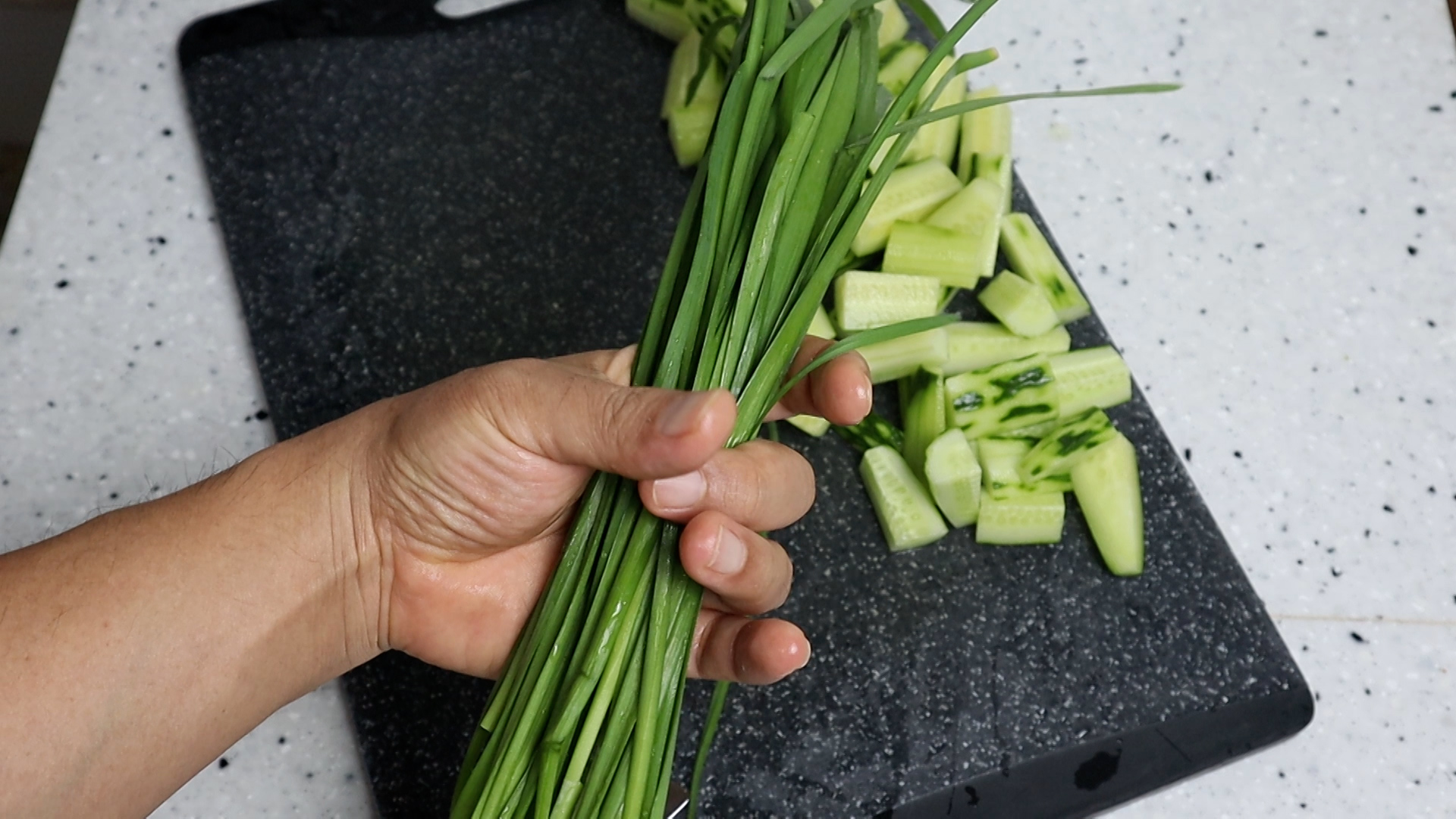 15. 부추는 오이와 비슷한 길이로 먹기좋게 잘라주세요.
