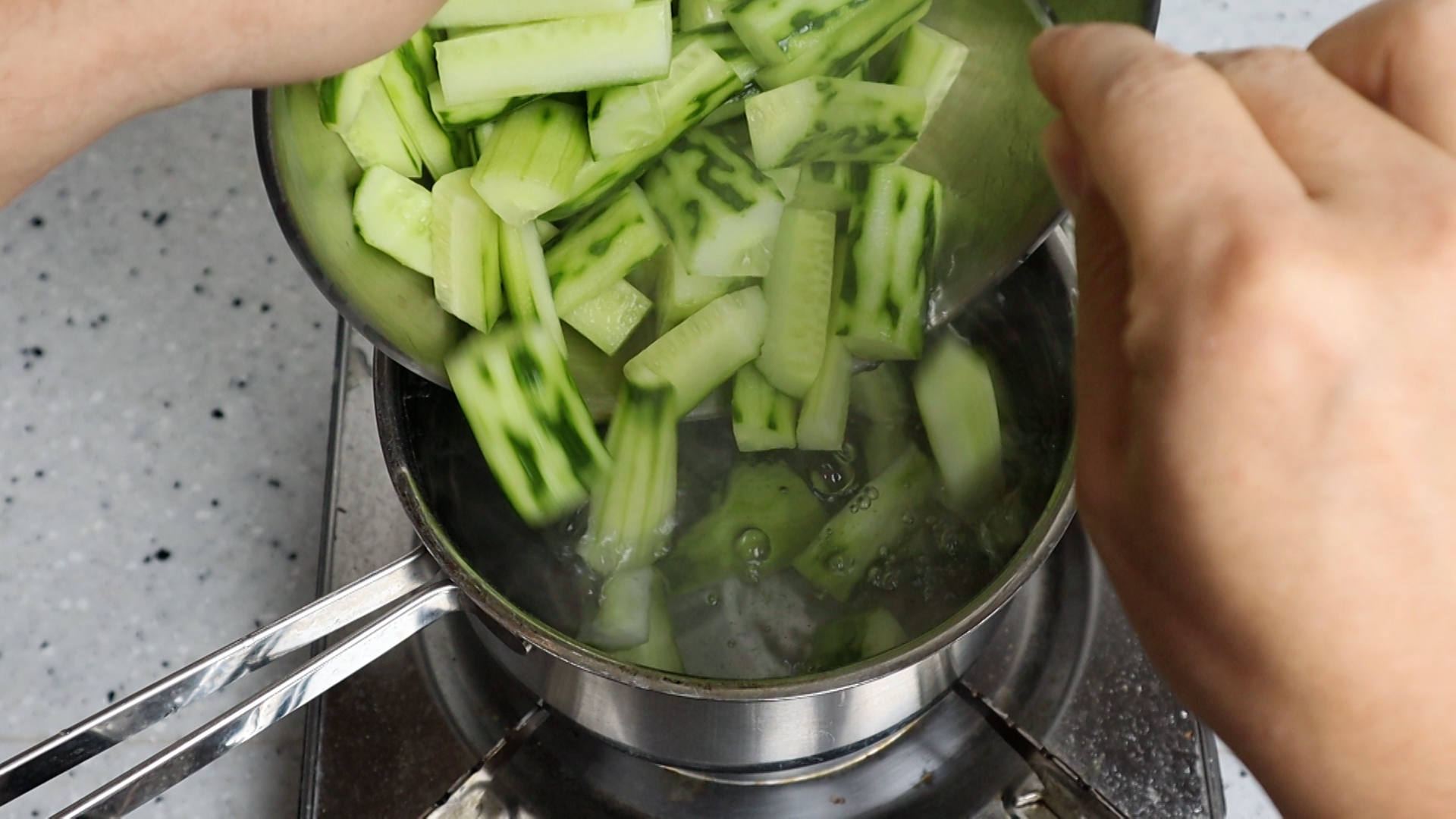 19. 불을 끄고 뜨거운 물에 오이를 넣고 10분간 담궈주세요. 10분 끓이는게 아니라 불을 끄고 10분 담궈 놓는겁니다.