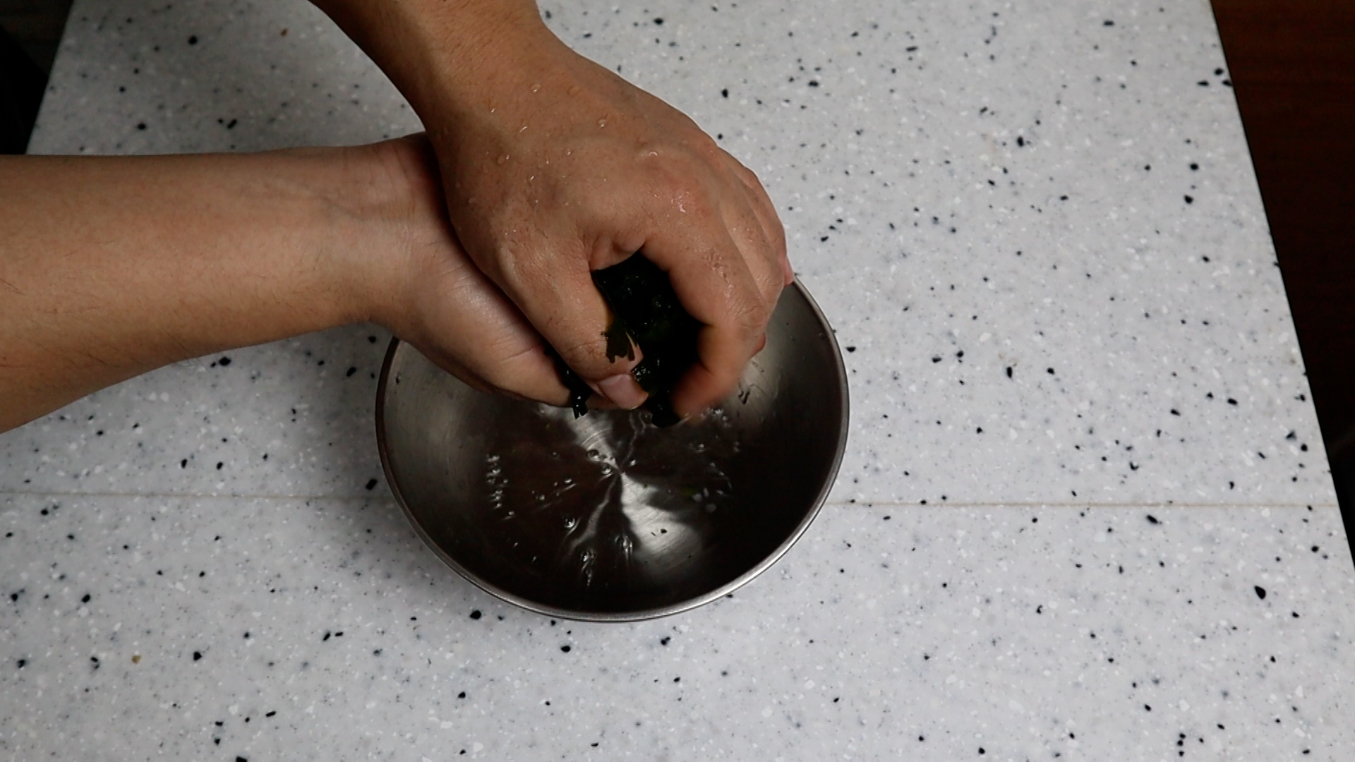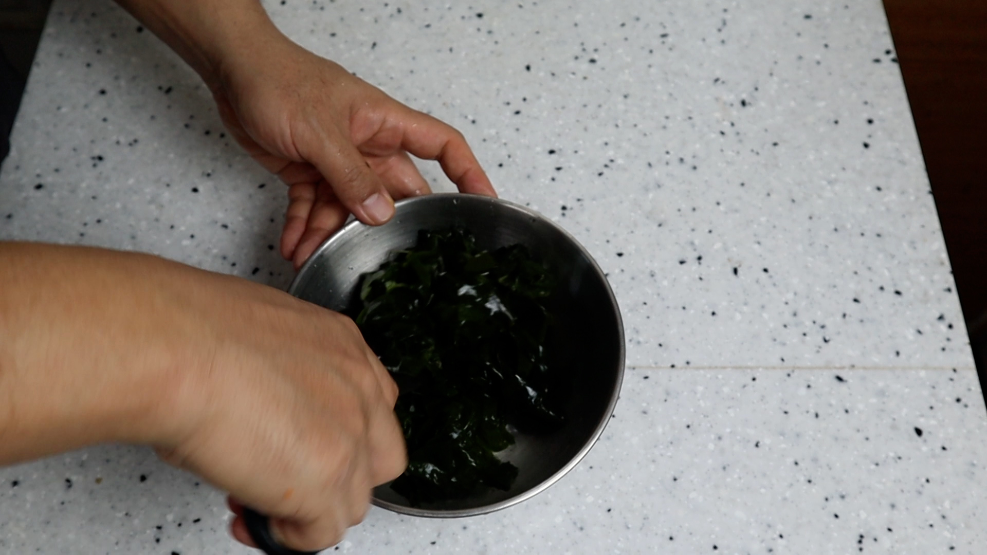 9. 불린 미역은 2~3차례 씻어서 물기를 꽉! 짜주세요.