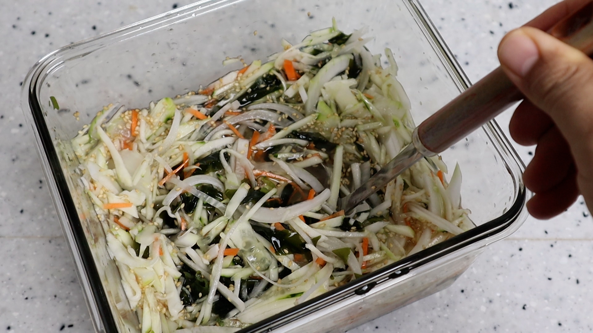 ** 무 쓴맛이 너무 강할땐 오이로 동량 대체