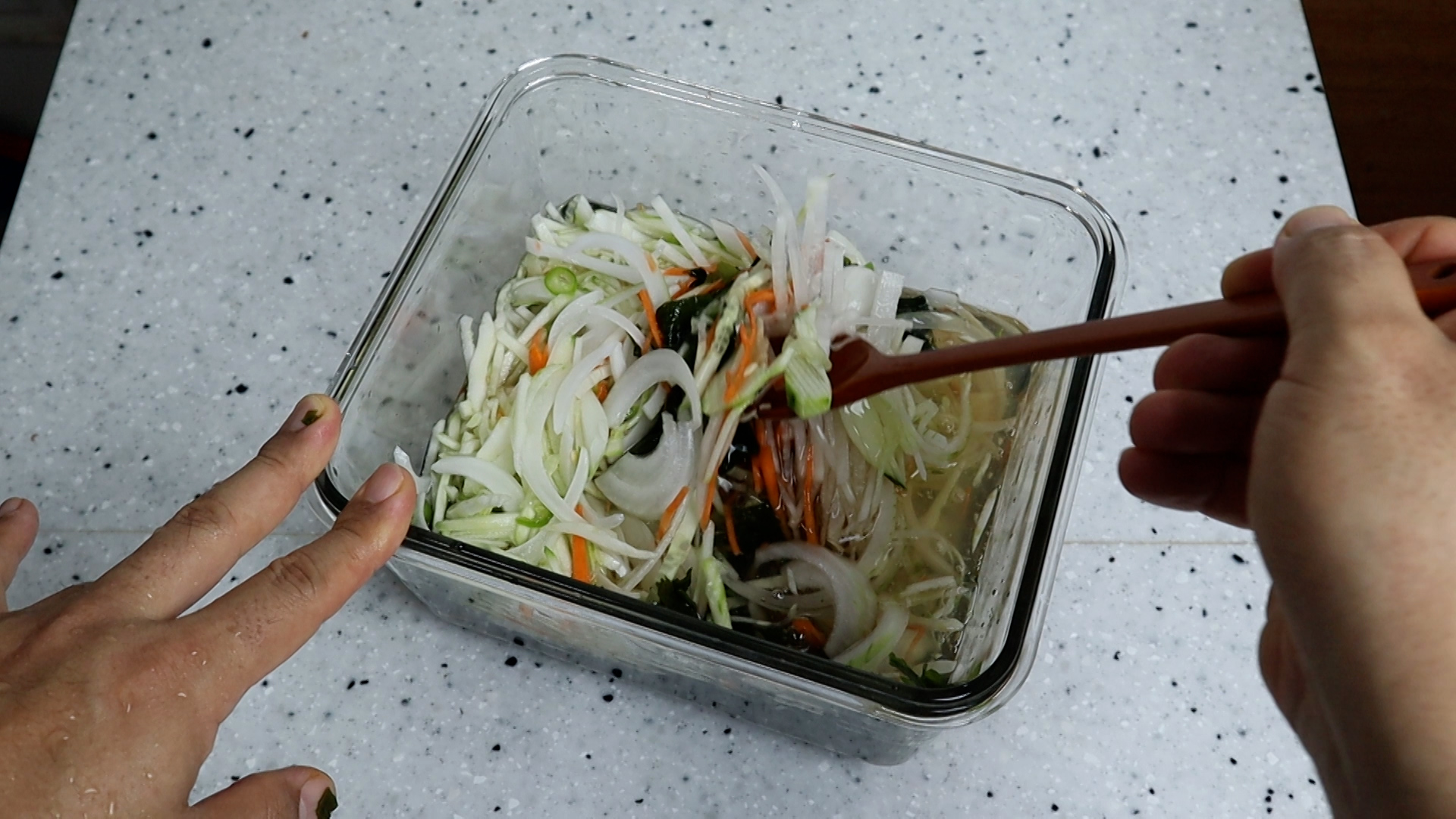 20. 이건 바로 먹는것 보다 냉장실에서 24시간 맛을 들이면서 차갑게 만들어 드셔보세요.24시간이 지나면 각 재료의 맛이 국물에 우러나와서 정말정말 맛있습니다!
