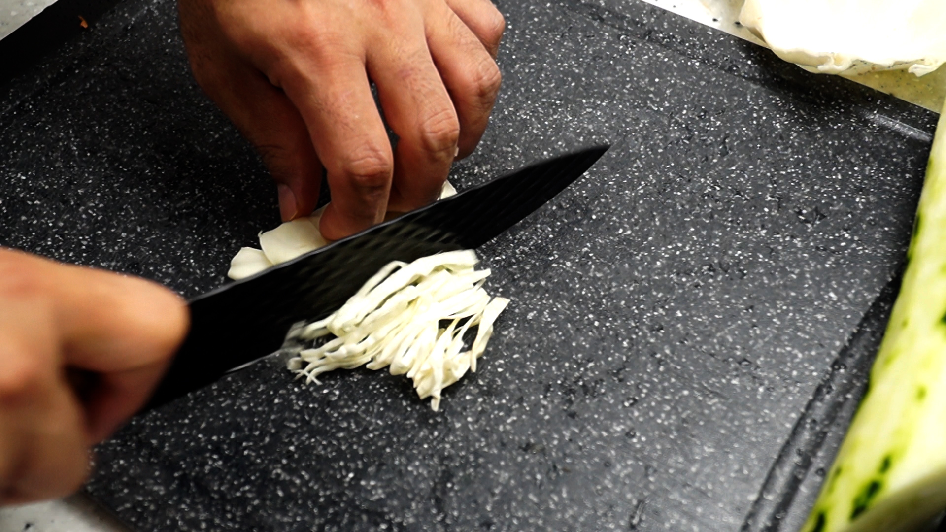 12. 양배추도 기호에 맞게 채를 썰어 준비해주세요.