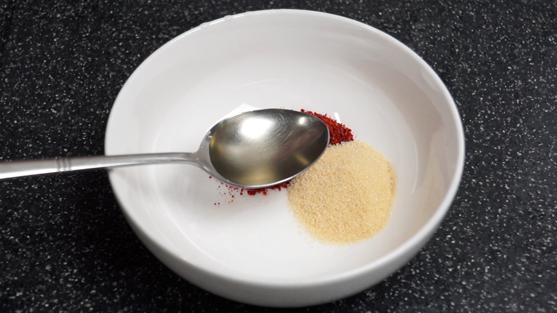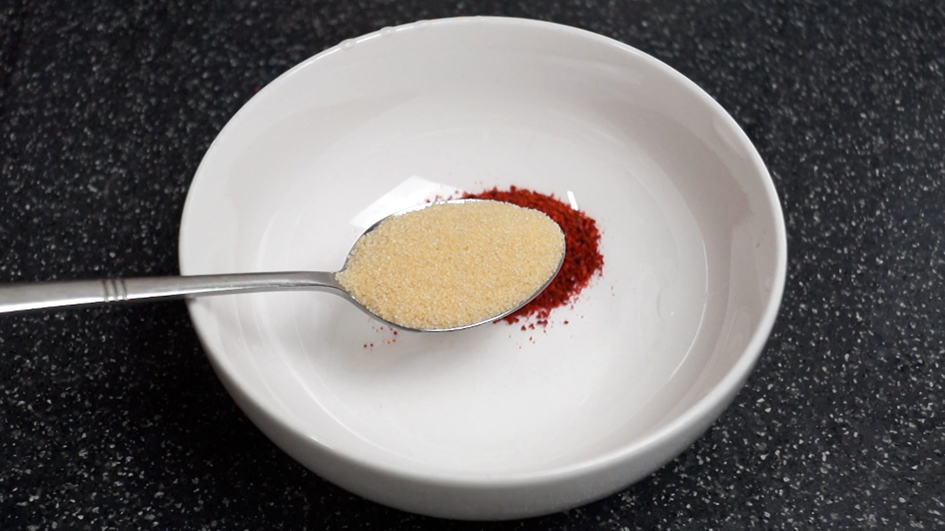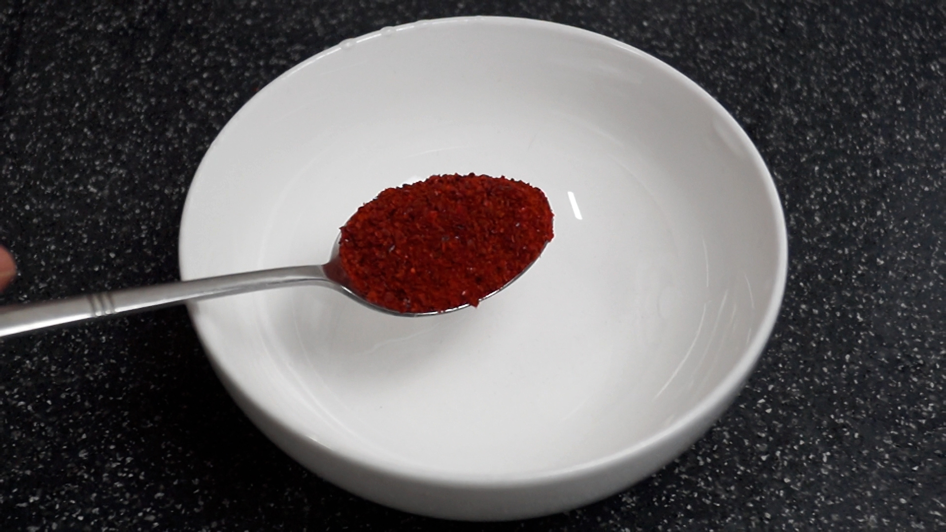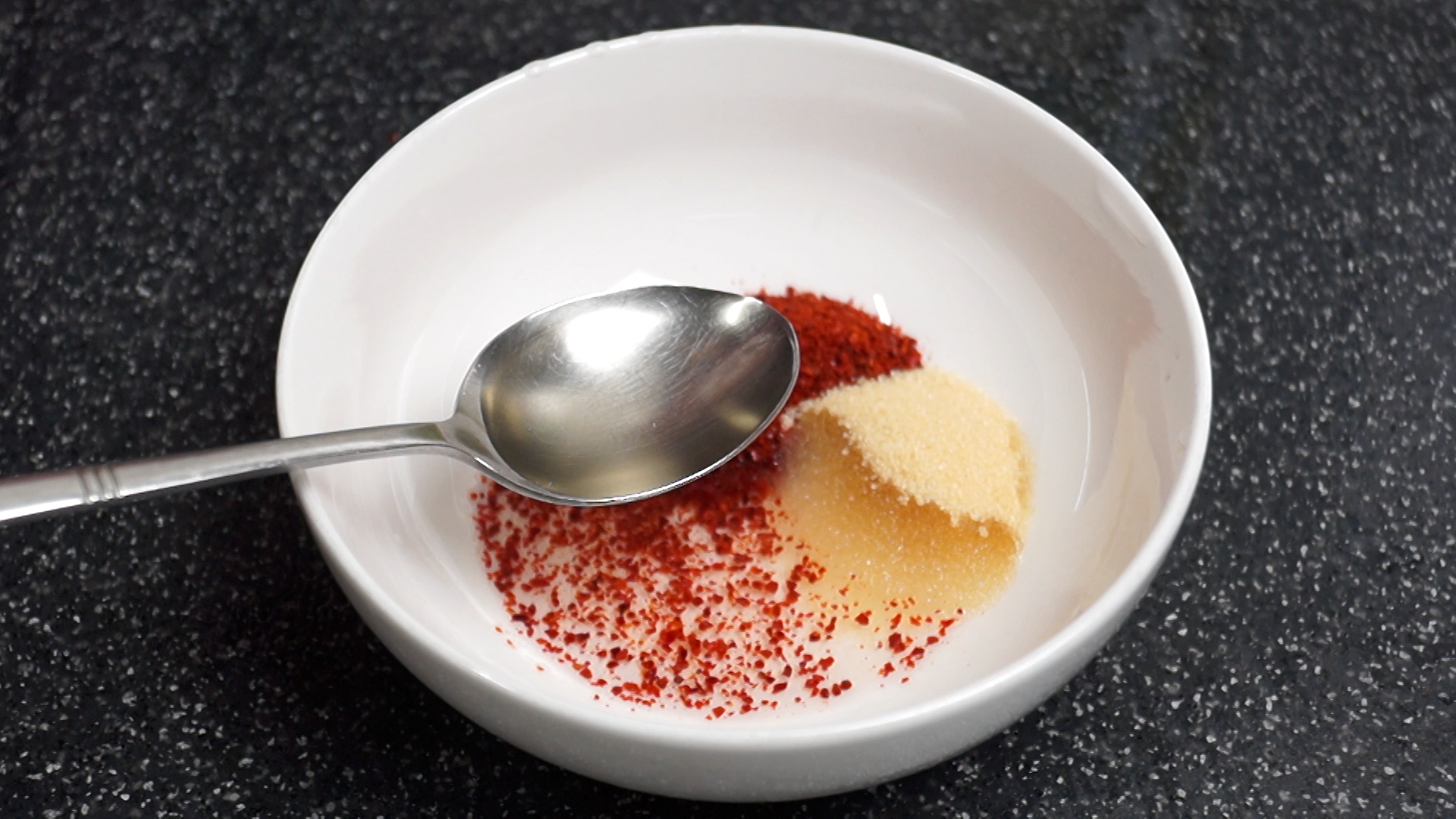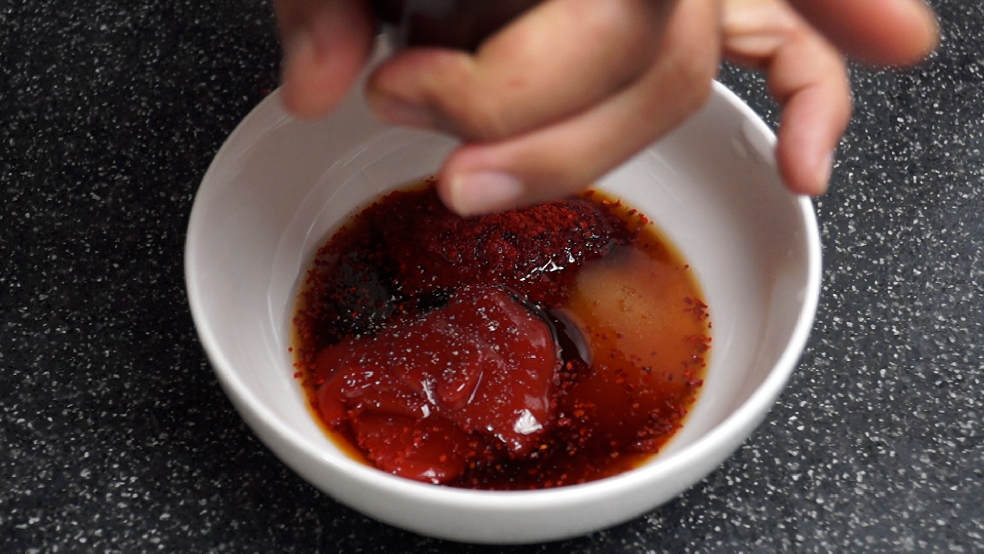 8. 양념란에 재료를 한데 넣어주세요. 고춧가루는 중간입자 고춧가루입니다.