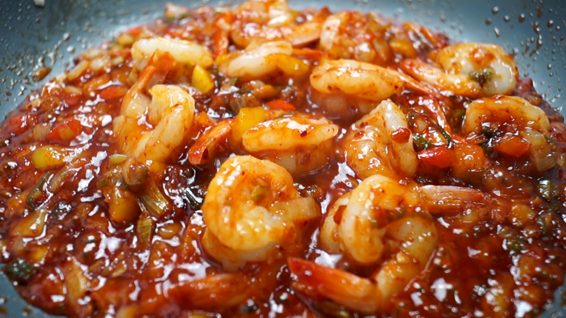 기름이 적어 담백하면서 새콤달콤 양념이 새우에 잘~ 달라붙어서 정말 맛있습니다.