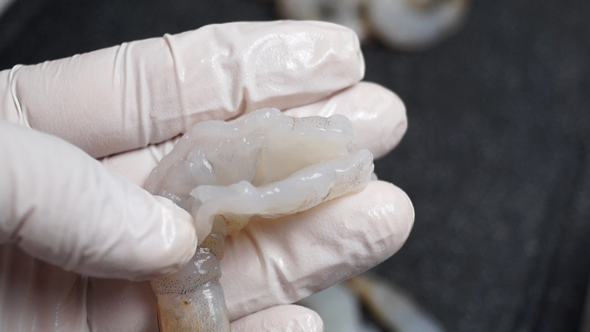 1. 두절 냉동새우 중지만 한거 12마리를 등에 칼집을 절반 정도 넣어주세요. 두절 냉동새우는 등쪽 내장이 제거 되어 있어 사용이 편해요~