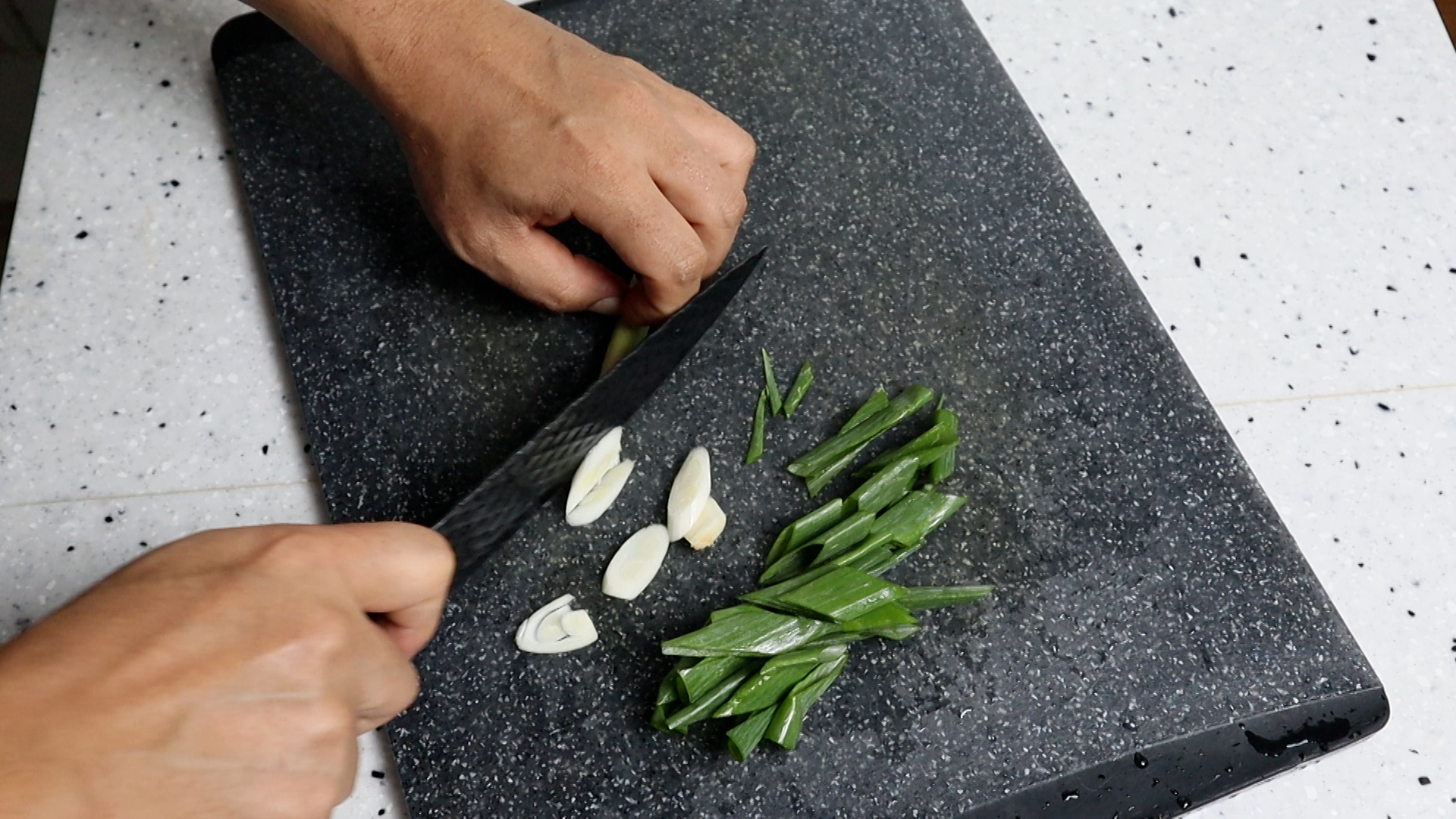 1. 대파는 흰대와 초록대를 섞어서 어슷어슷 썰어주세요.