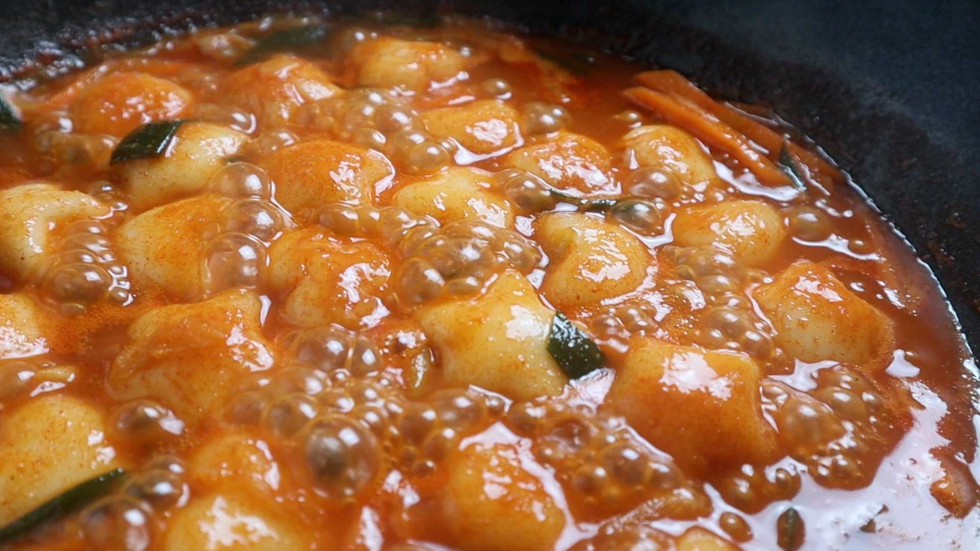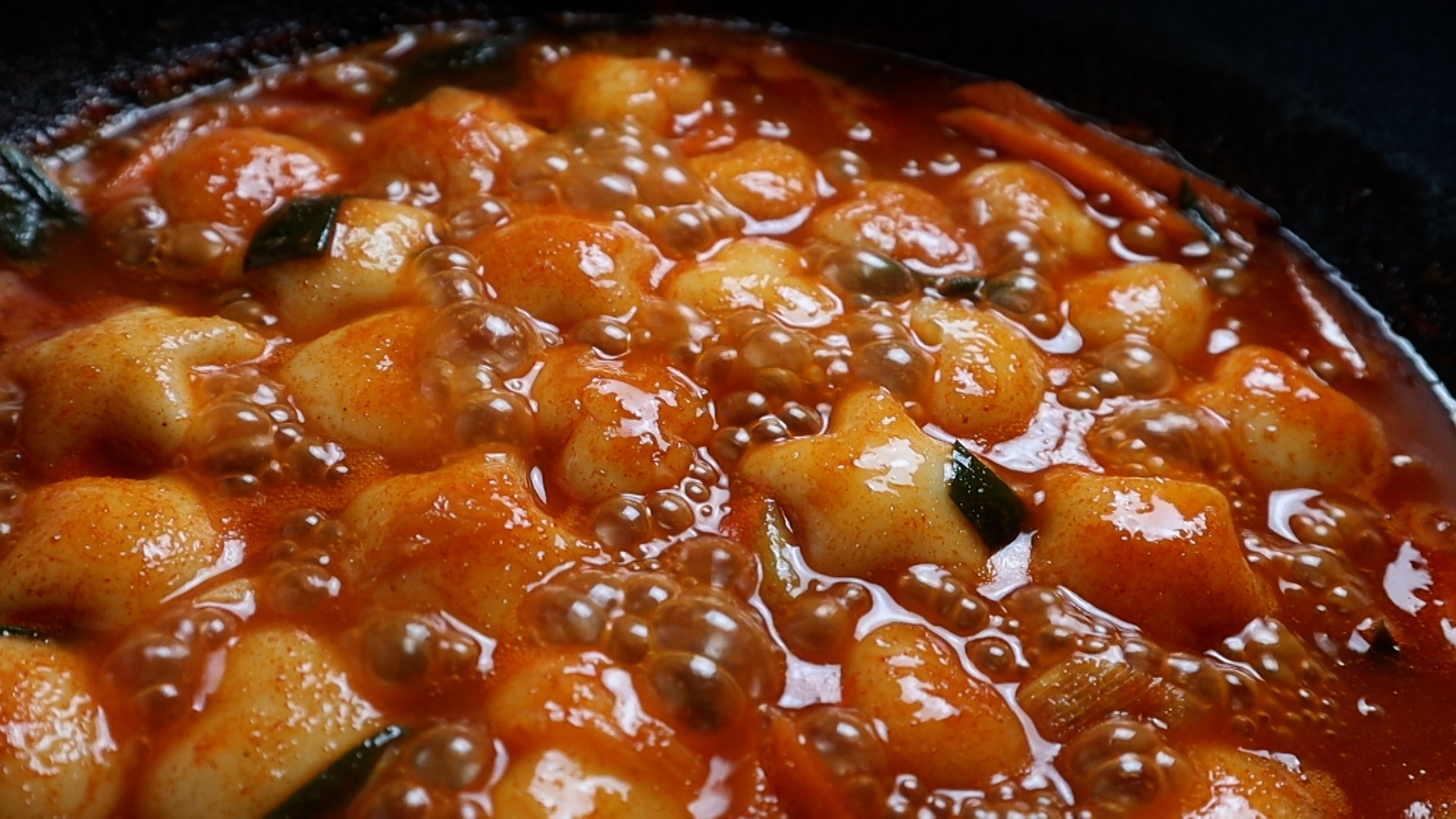 15. 5~6분 정도 끓인 다음에 양념이 너무 묽은 분들은 1~2분 정도 더 졸여서 기호에 따라 양념점도를 조정해주세요.