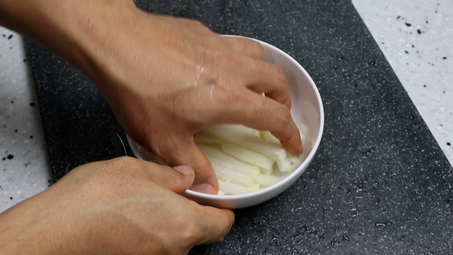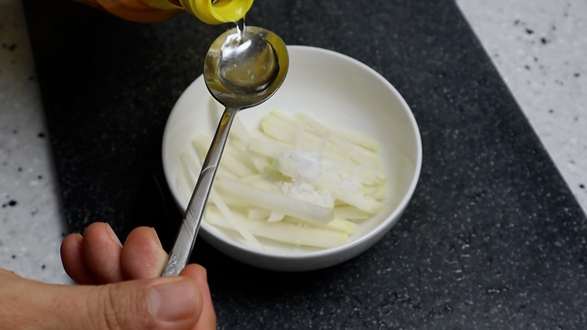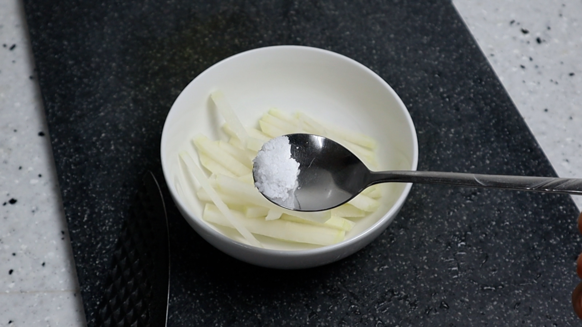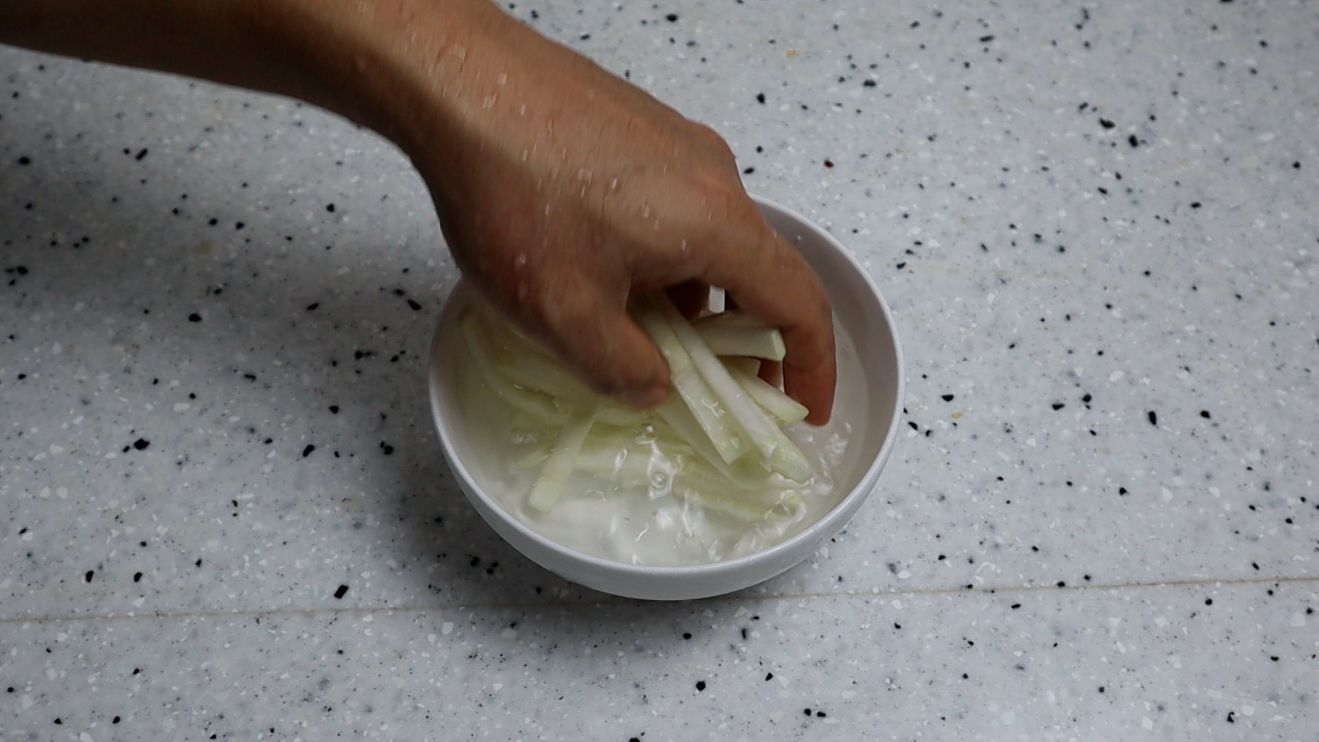 1. 무는 0.5cm 정도로 채를 썰어주세요.