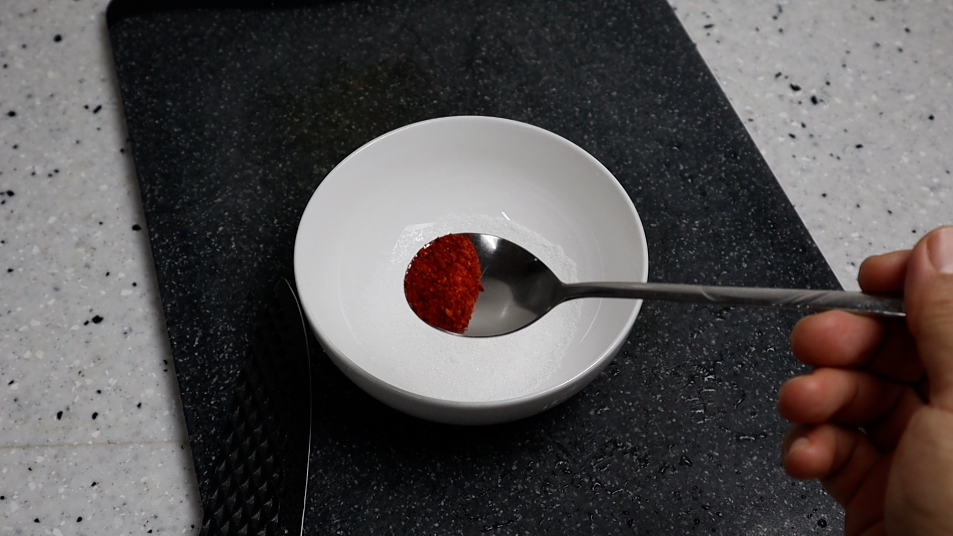 7. 고춧가루를 넣어주세요. 가능한 고운걸 사용하시는게 거슬거림 없이 좋습니다.