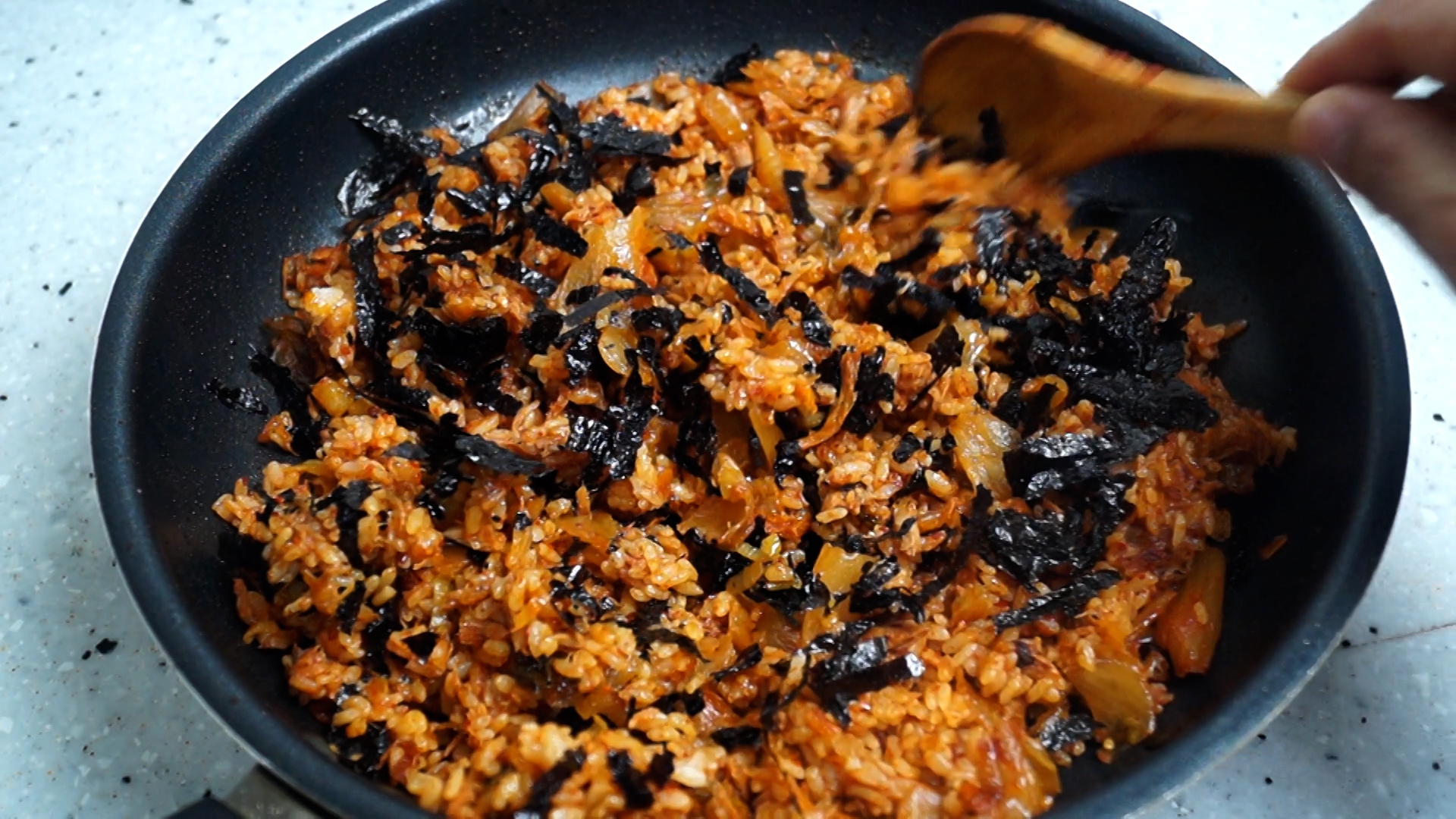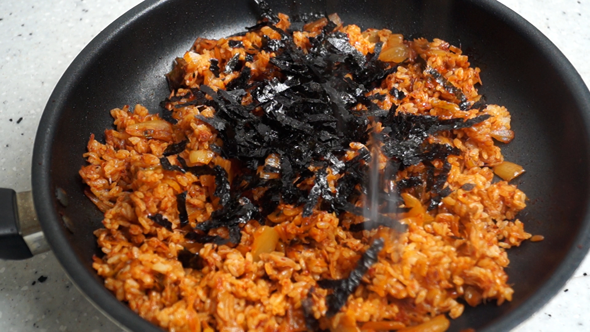 19. 맛을 살짝 보시고 간이 더필요하시면 맛소금을 살짝 넣어주세요. 김치마다 염도가 다달라 맛차이가 있을수 있으니 짤때는 맨밥! 싱거울땐 맛소금 살짝 넣어 볶아주세요.