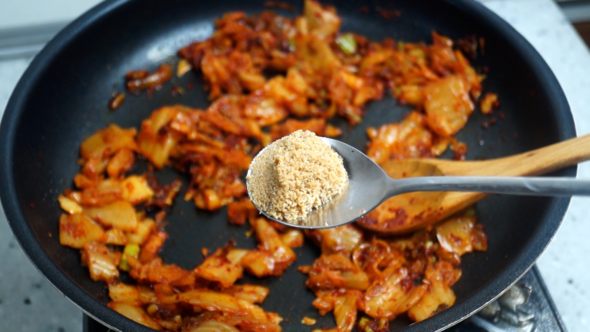 13. 소고기 다시다를 넣어주세요~ 사먹는 김치볶음밥의 핵심은 바로 이거죠!