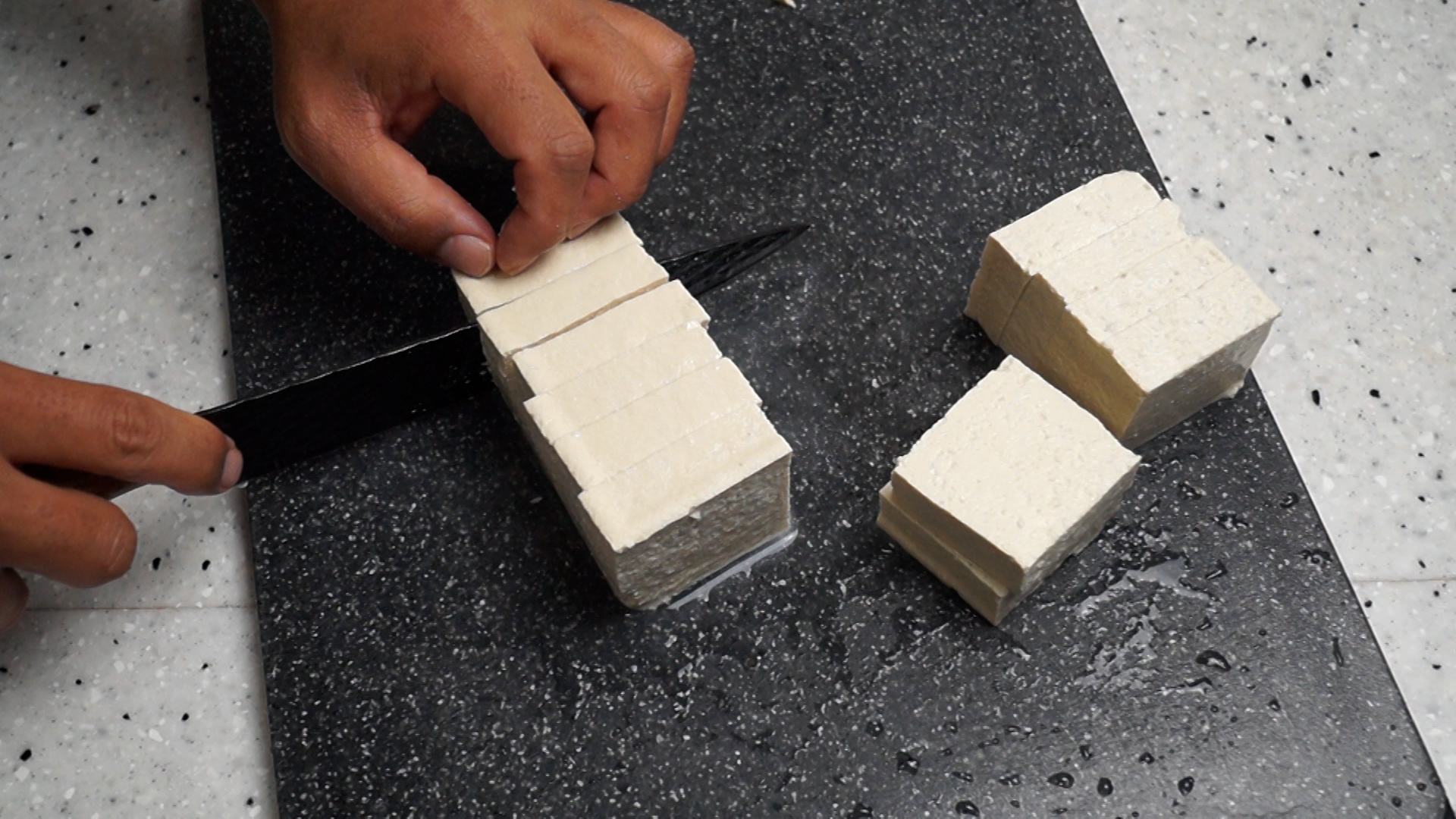 1. 두부는 단단한 부침용으로 준비해서 먹기 좋은 크기로 기호에 맞게 썰어주세요.