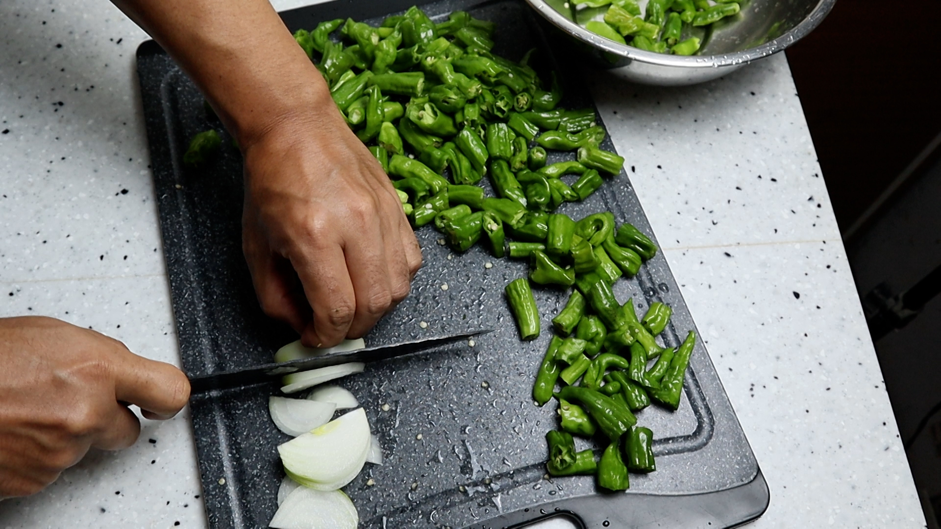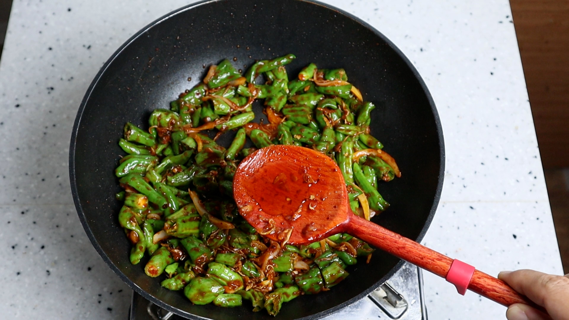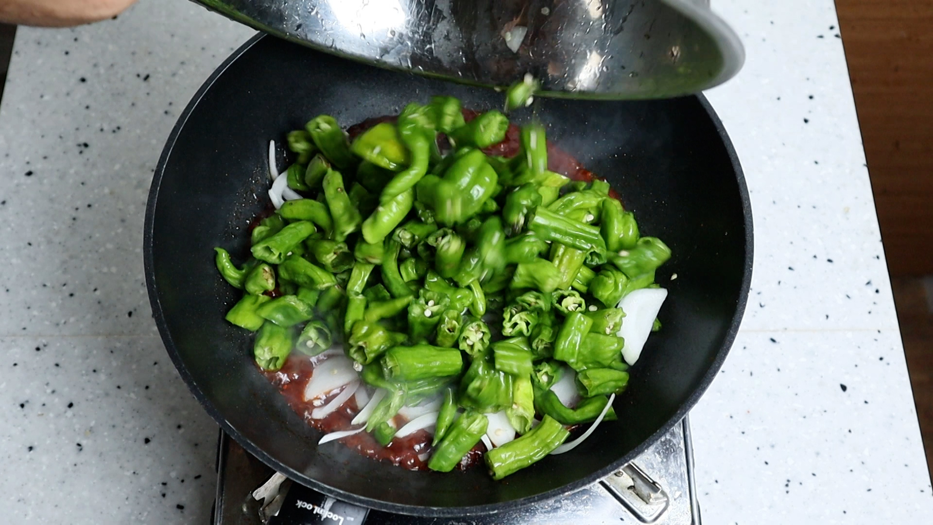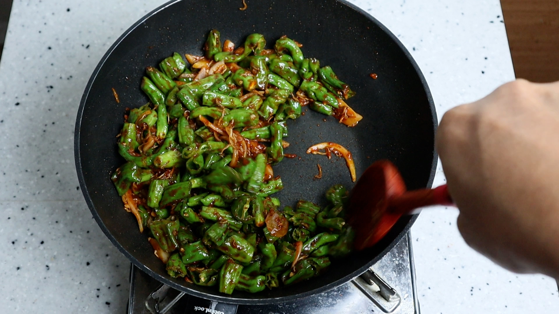 14. 꽈리고추와 양파를 넣어주세요.
