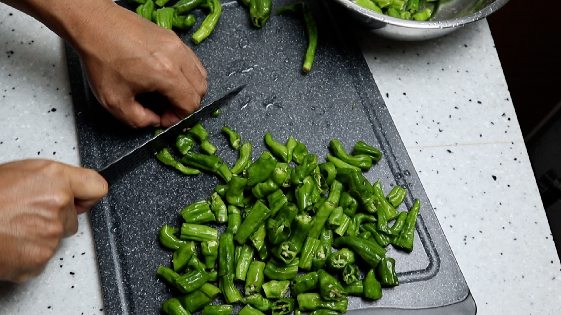 2. 꽈리고추를 먹기좋은 크기로 3~4등분으로 잘라주세요.