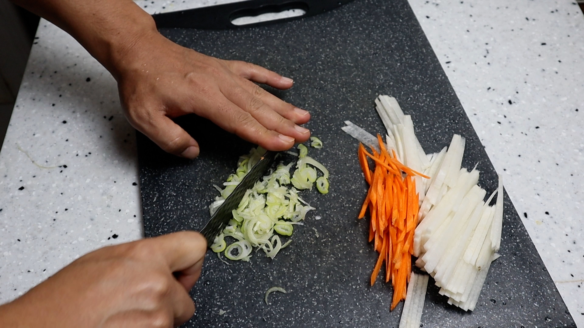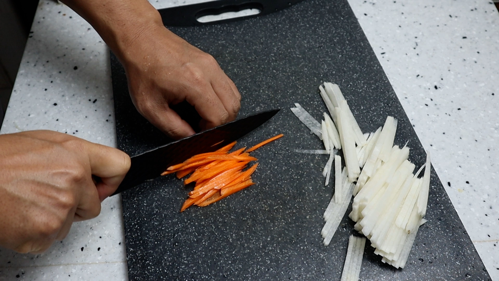 2. 당근도 무 처럼 얇게 채를 썰어주세요.