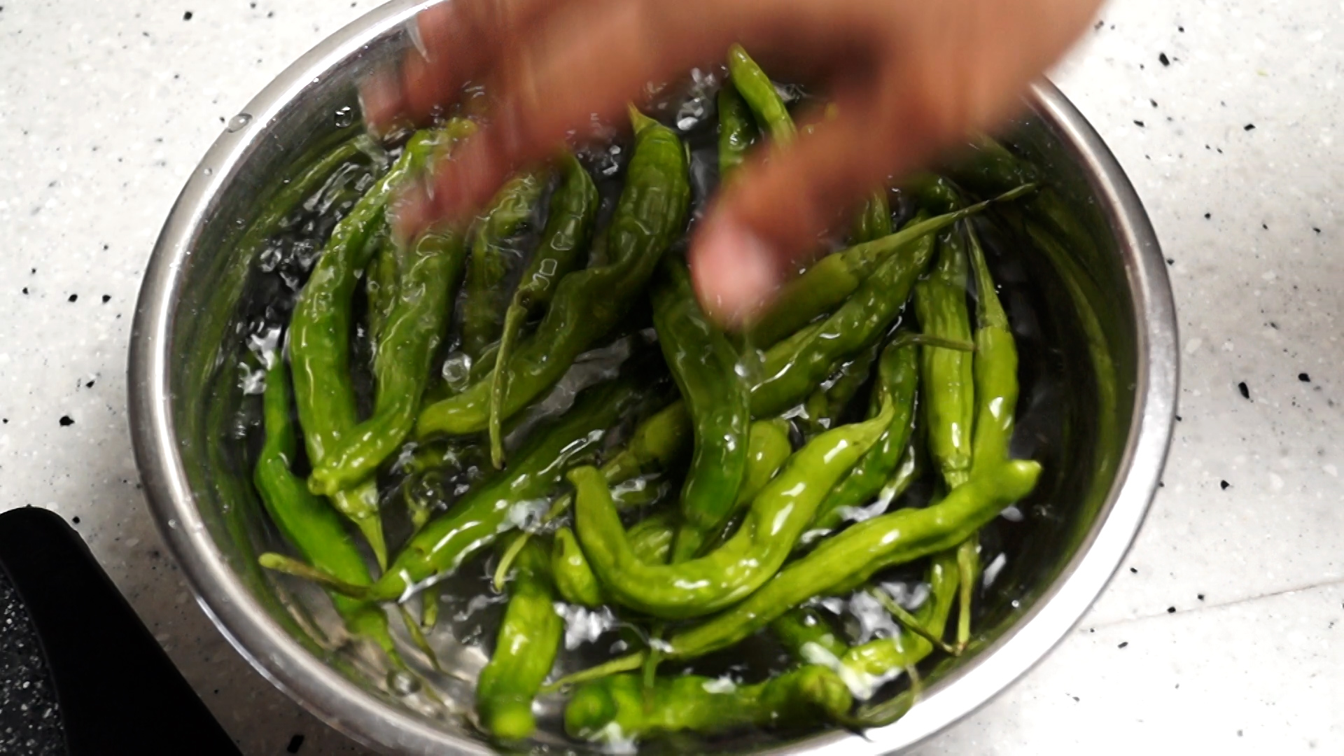 1. 꽈리고추를 대략 30개를 깨끗히 세척해주세요.