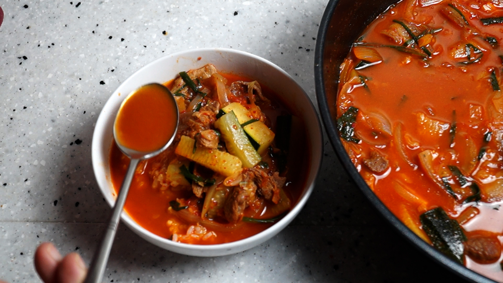 뻘건 국물에 고기도 듬뿍 애호박도 듬뿍!